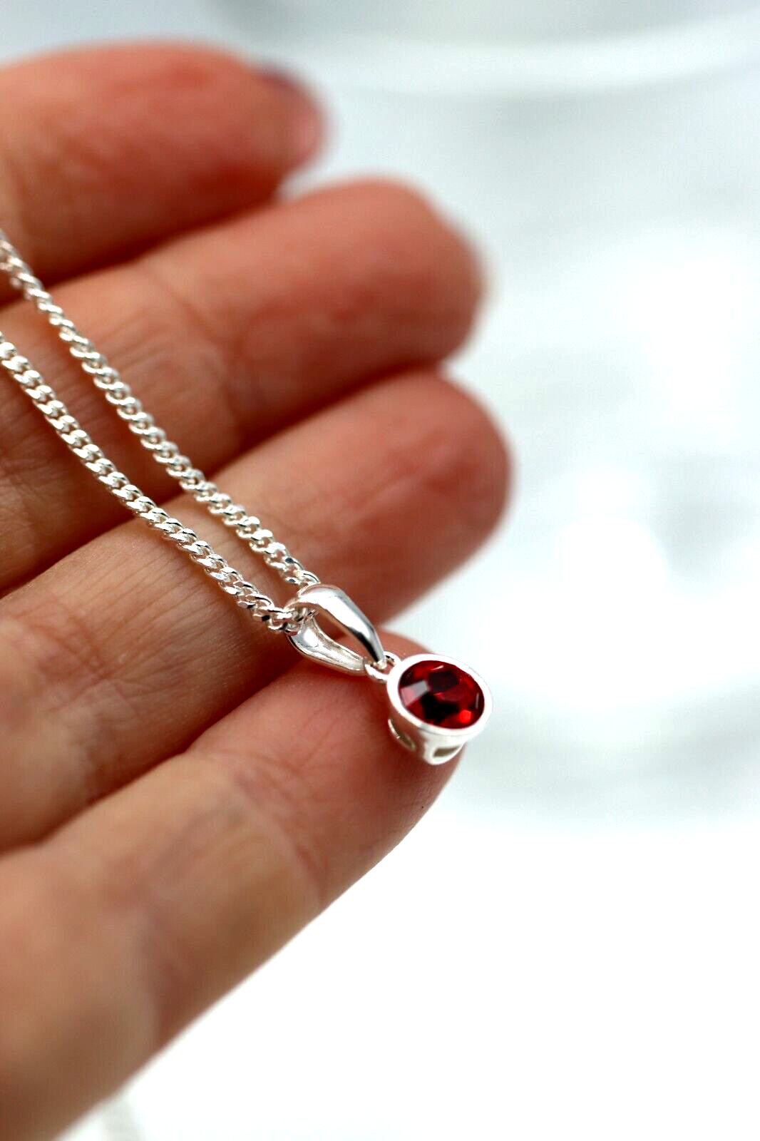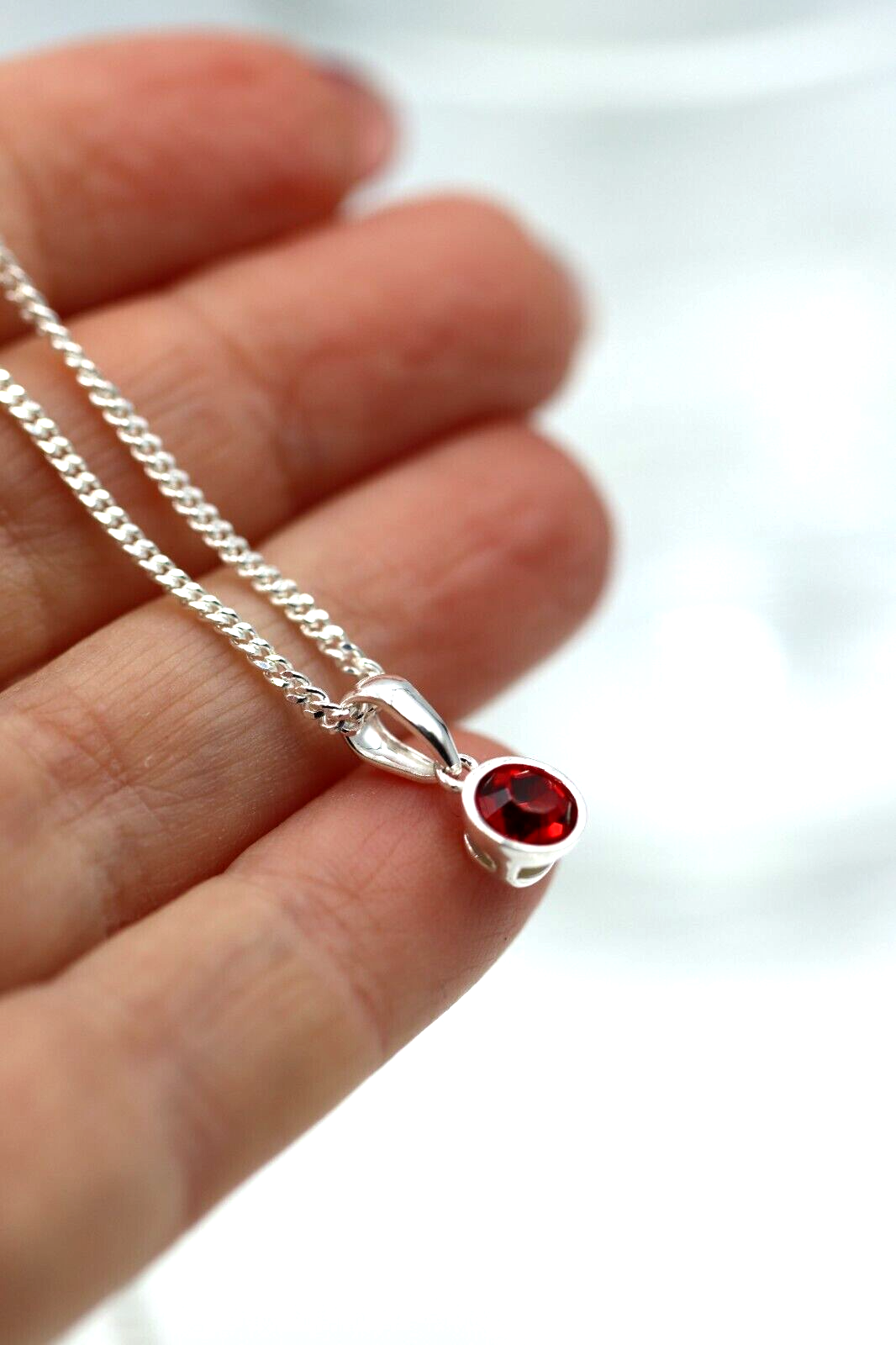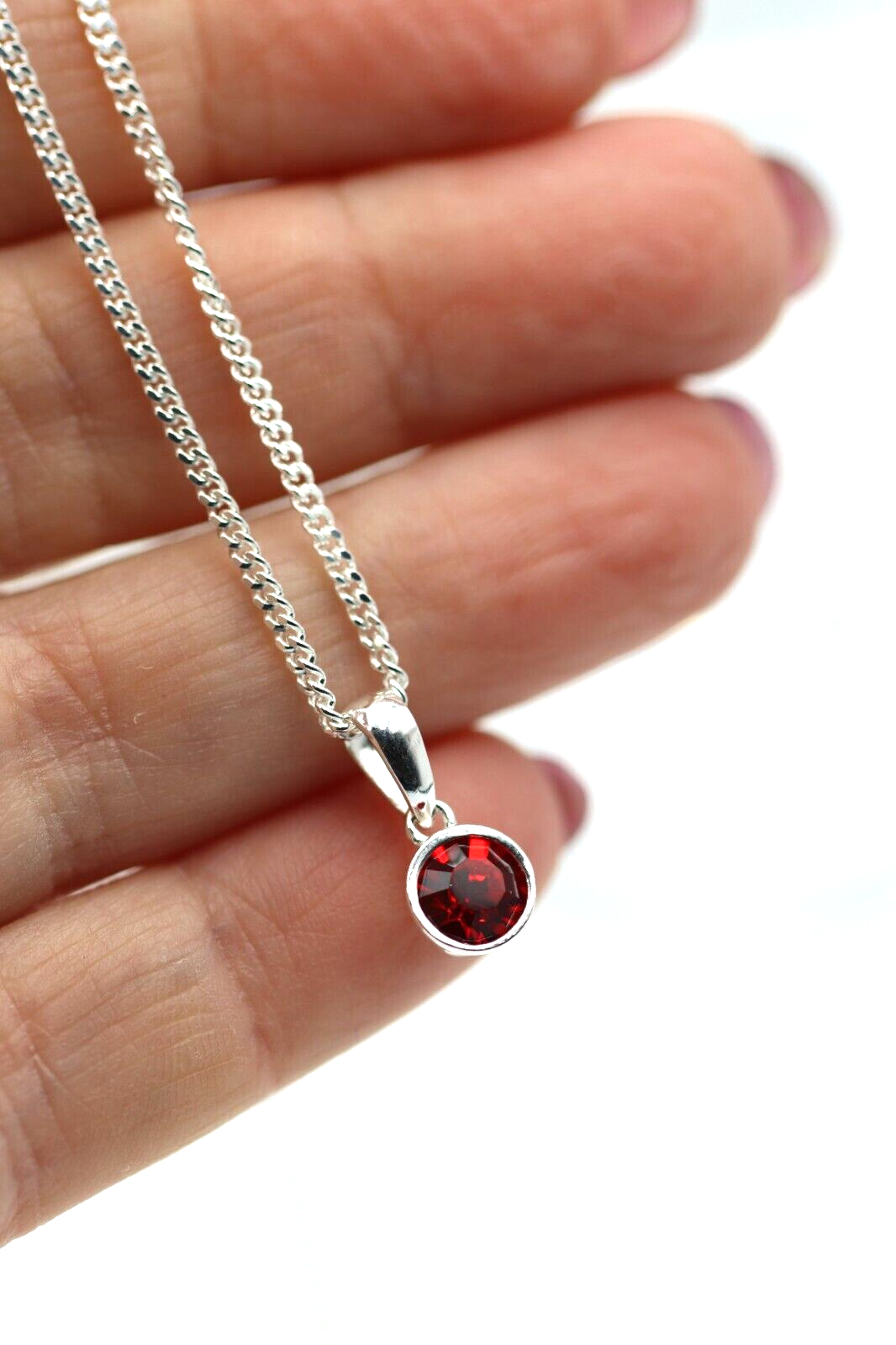 Genuine Sterling Silver Round Crystal Birthstone Bezel Pendant/Charm + Necklace - Available January to December birthstones