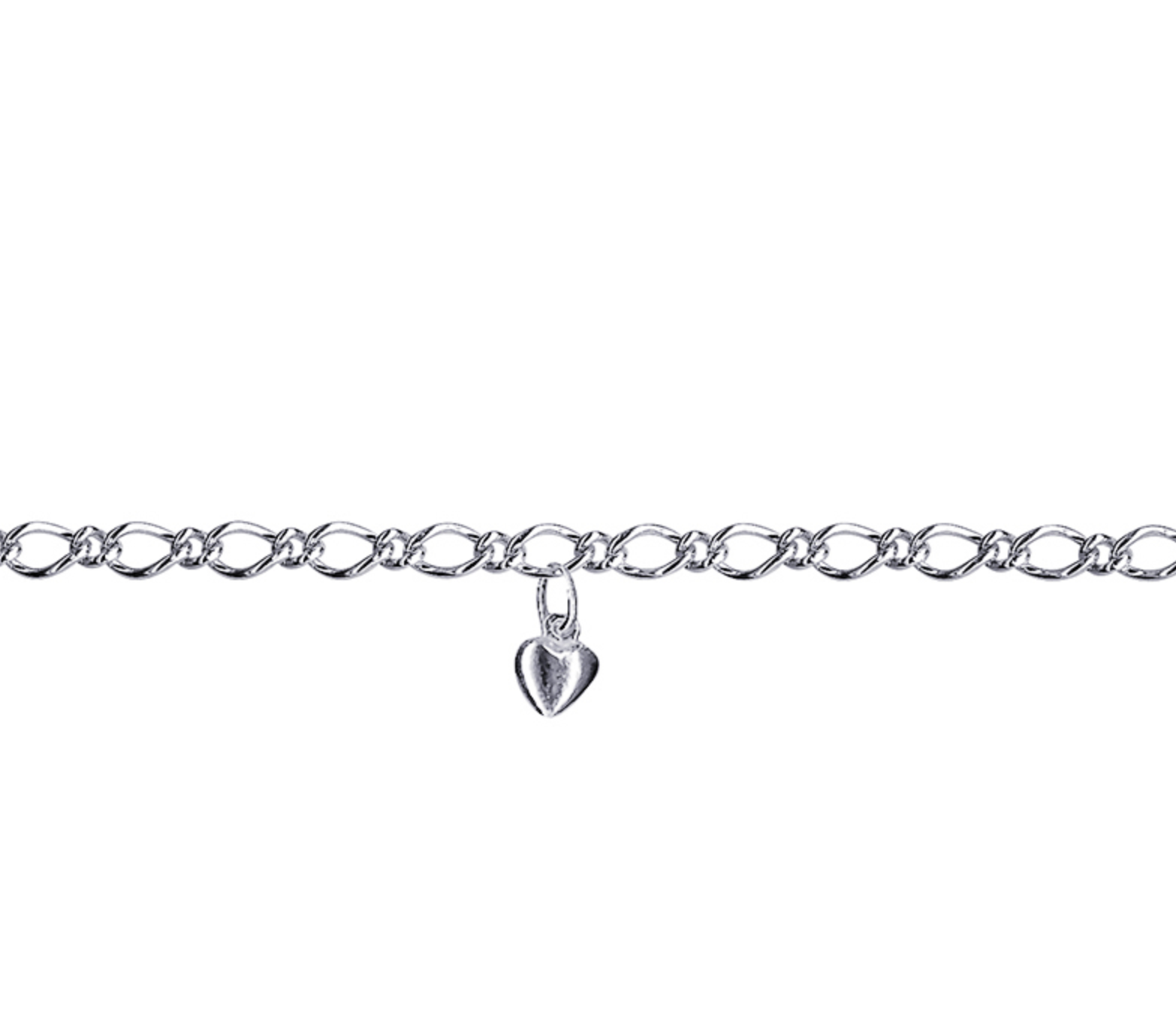Genuine Sterling Silver 925 25cm Figaro Anklet + Heart Charm