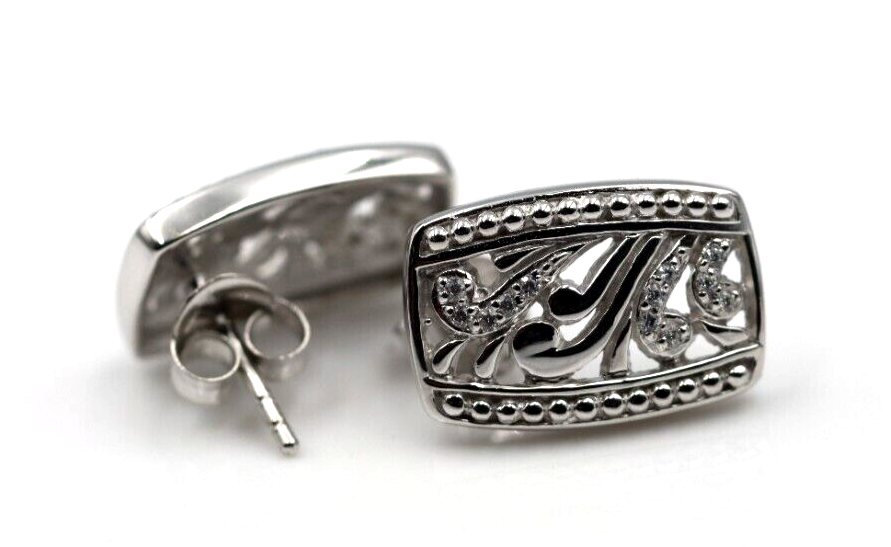 Genuine Sterling Silver 925 Cubic Zircon 8mm Filigree Stud Earrings