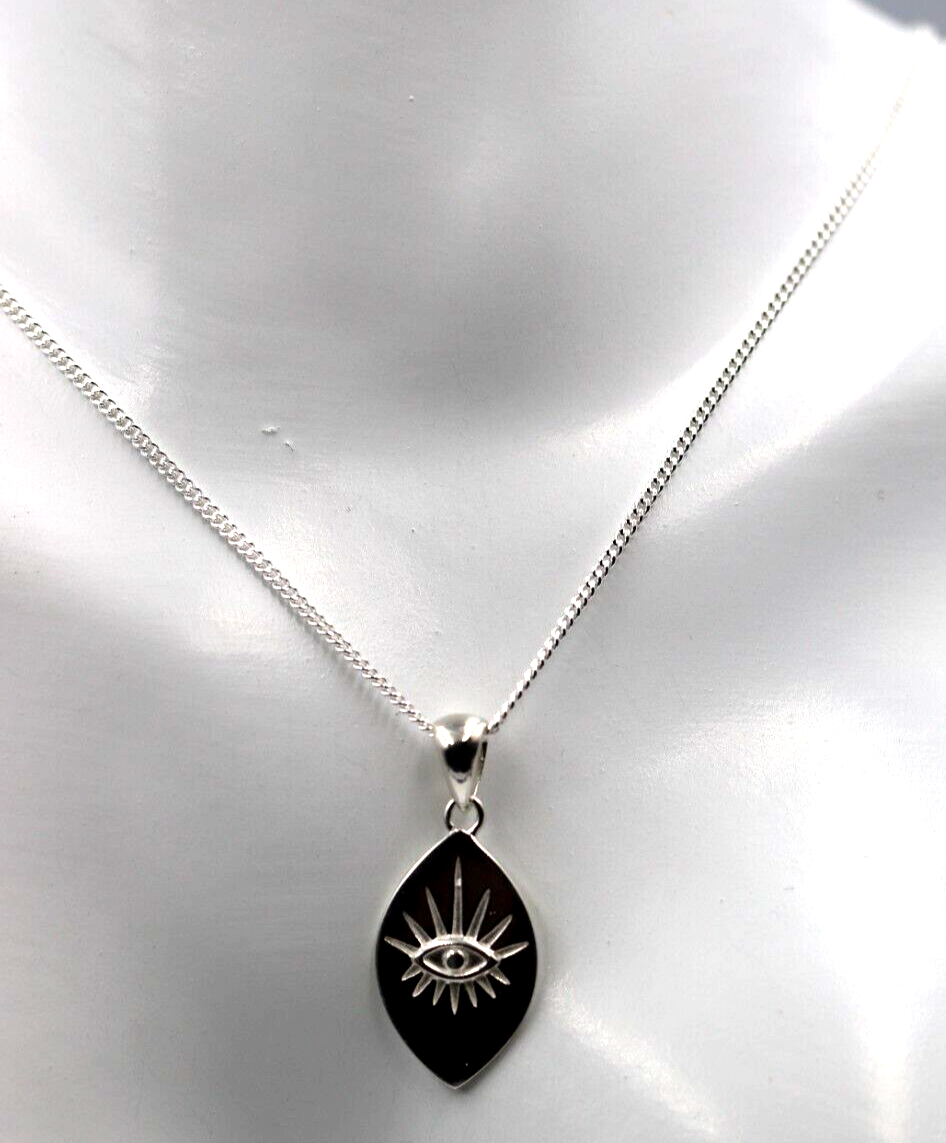 Genuine Sterling Silver 925 Greek Eye Charm / Pendant & Chain Necklace