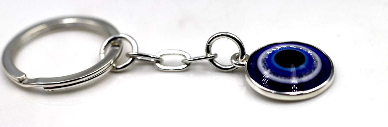 Genuine Sterling Silver 925 Greek Evil Eye Key Ring Keyring with Chain + 21mm