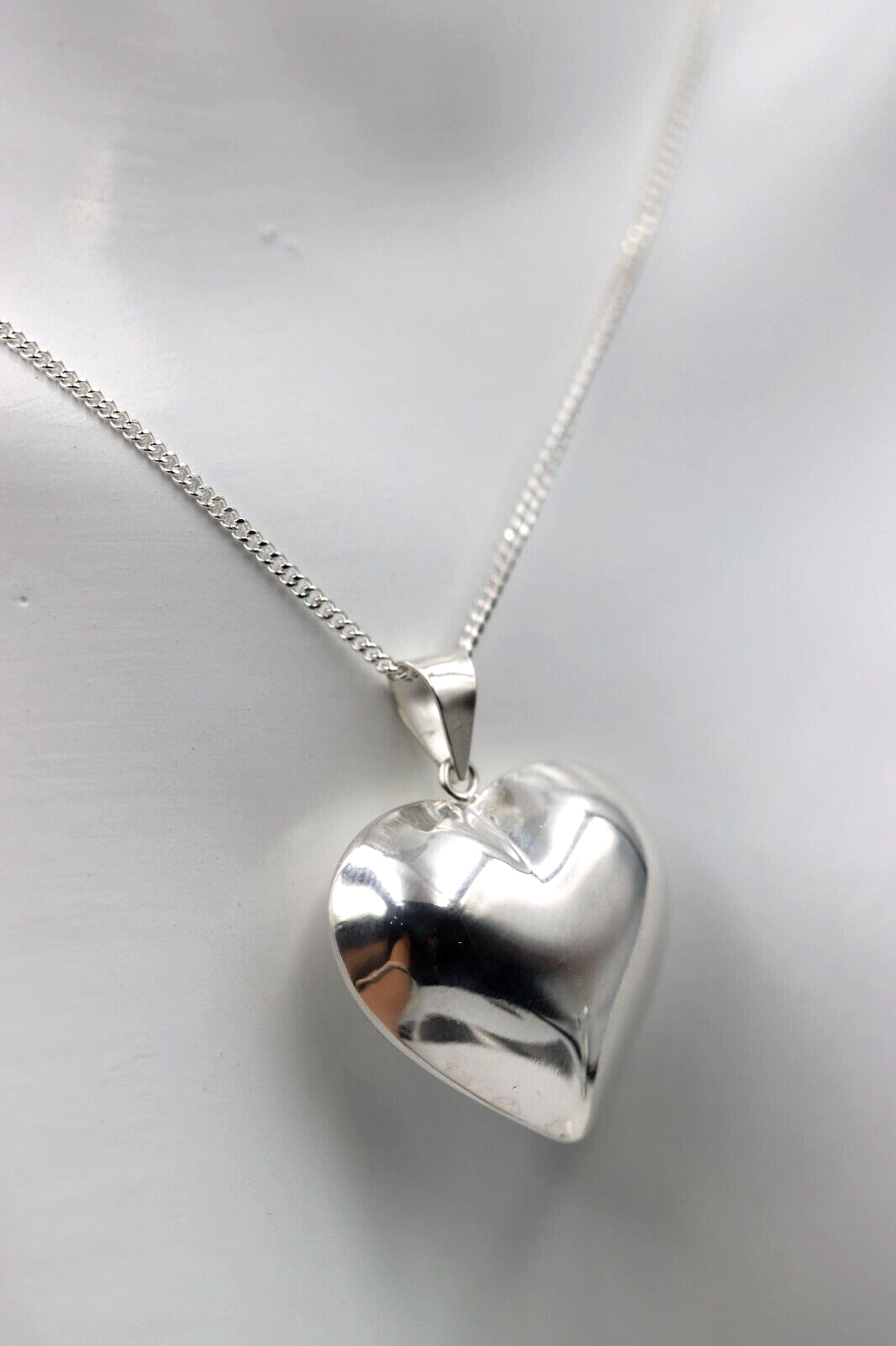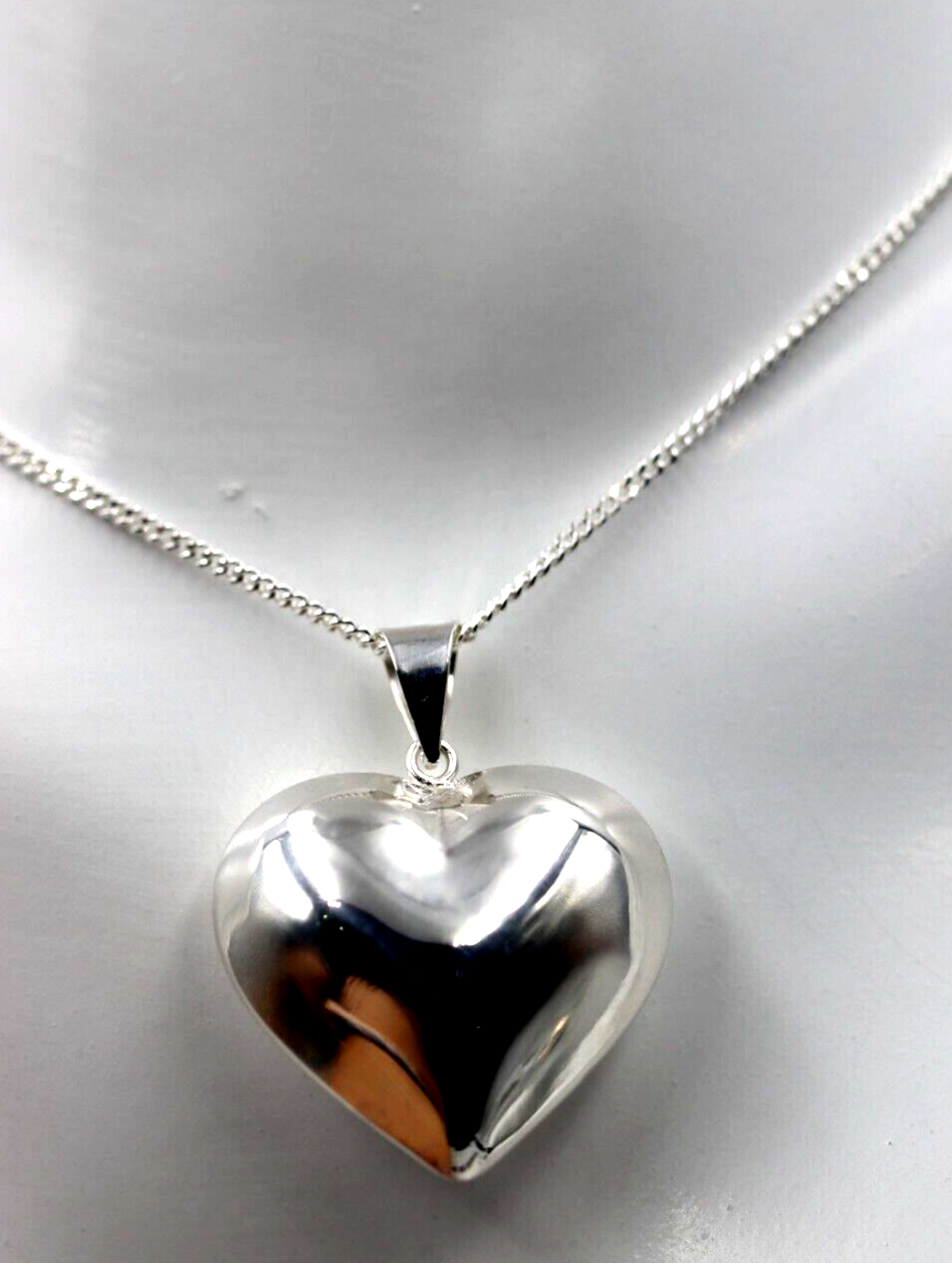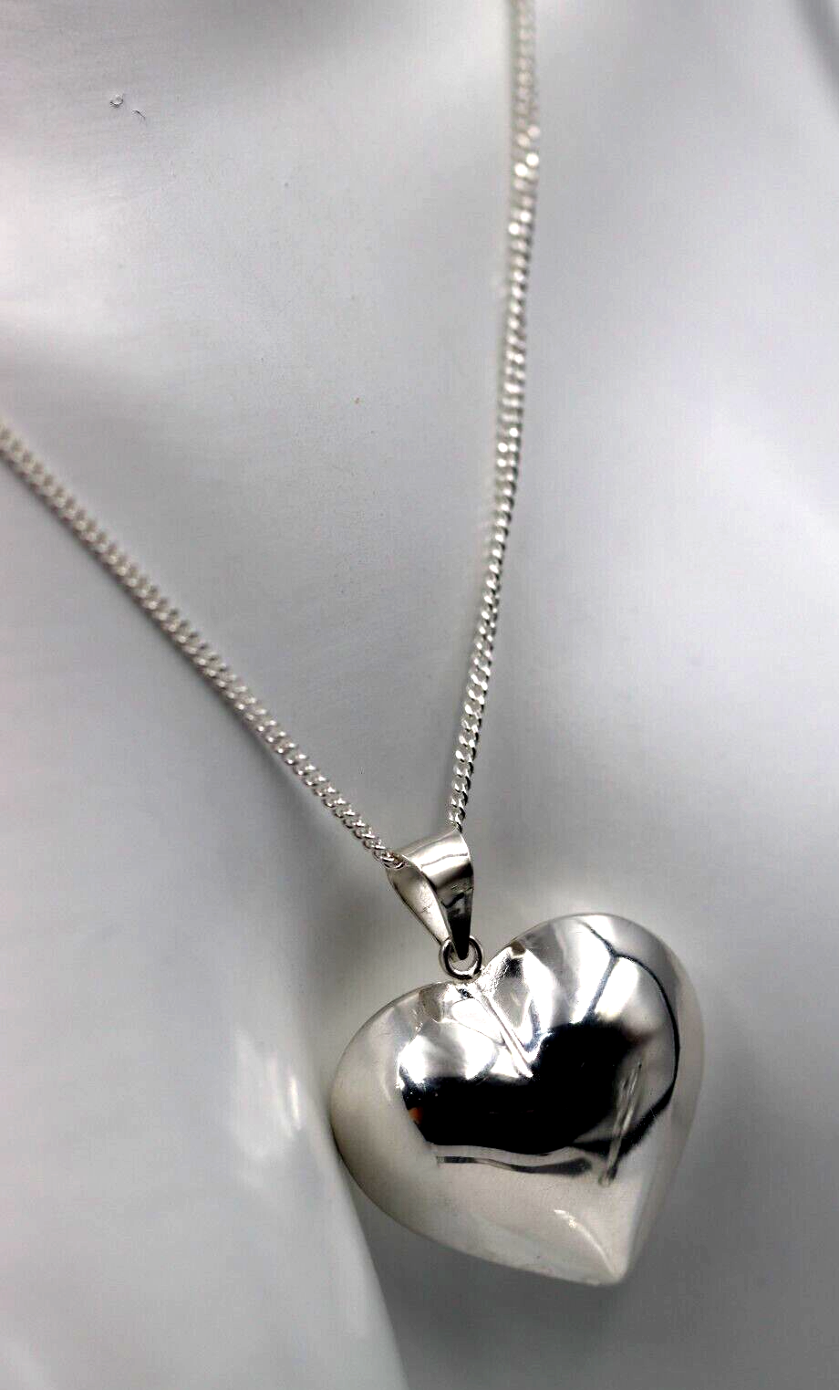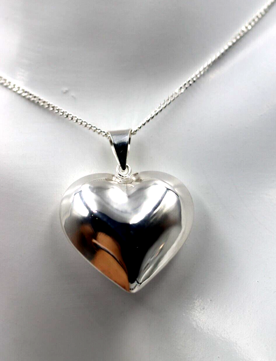 Genuine Sterling Silver 925 Medium Puffy Bubble Heart Pendant + Necklace Chain