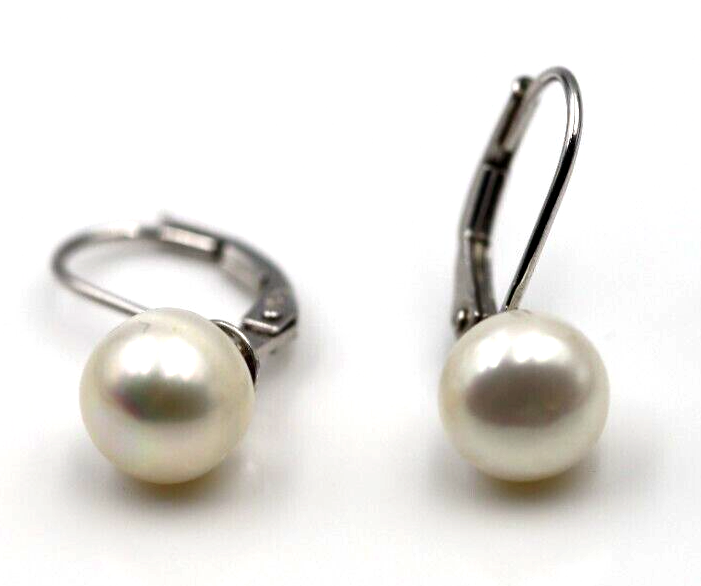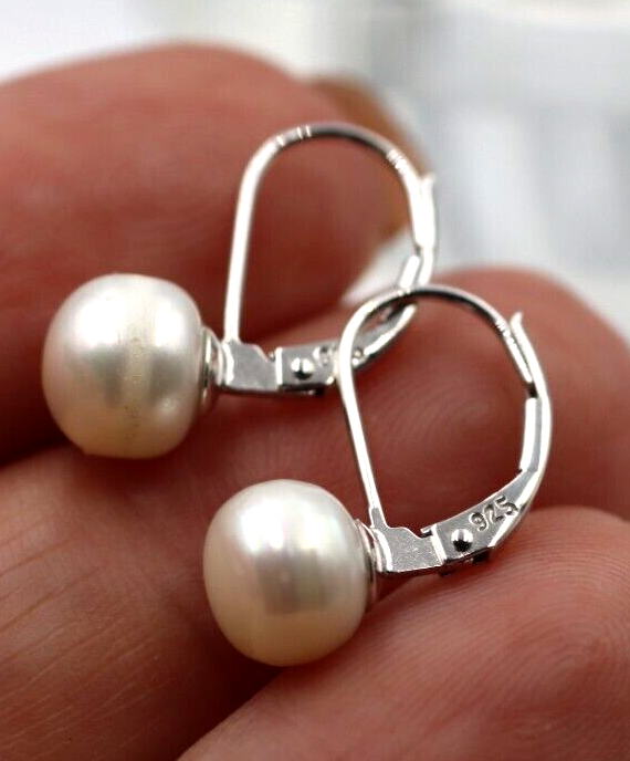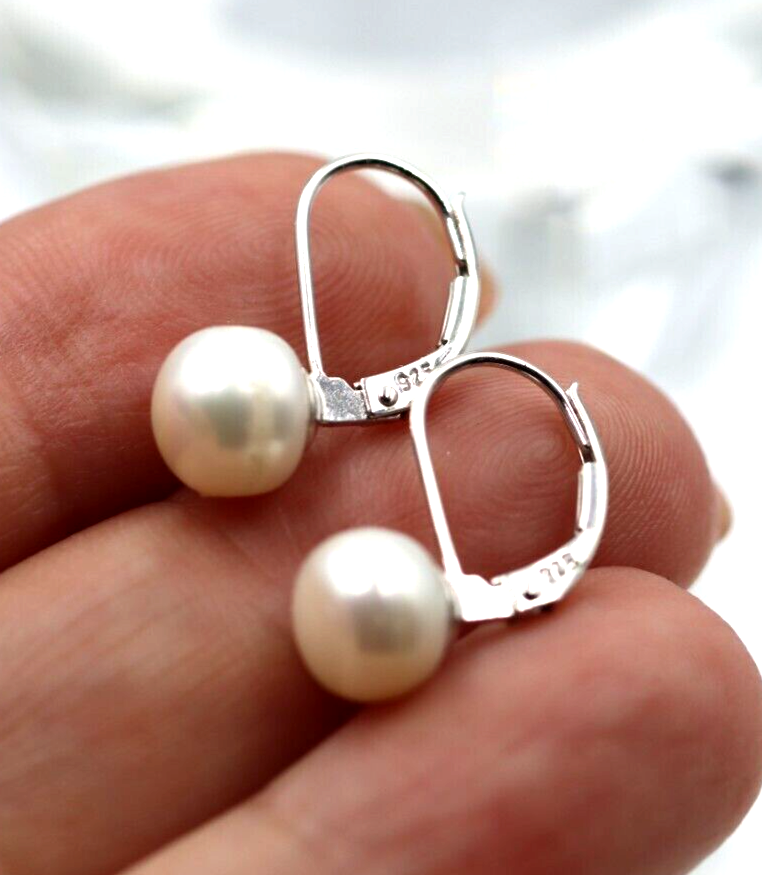 Genuine Sterling Silver 925 Pearl Button Earrings Continental Clip Earrings 7.7mm