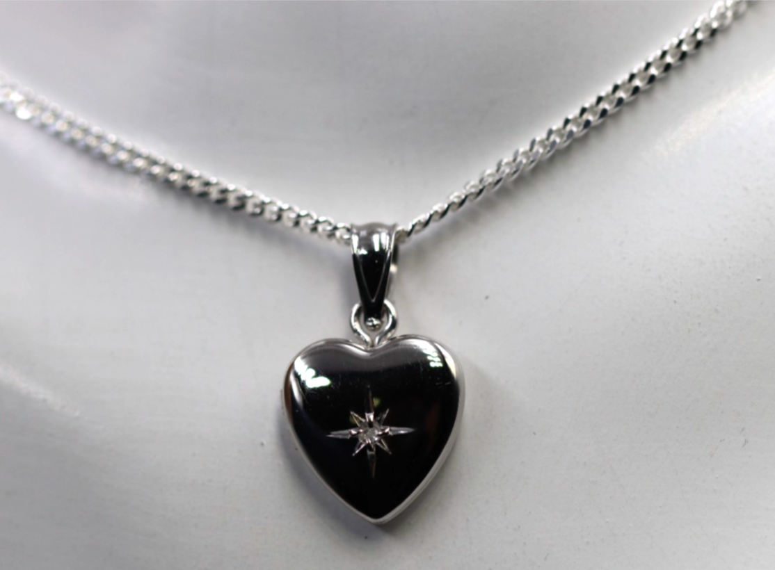 Genuine Sterling Silver Gold Plated or Sterling Silver 12mm 925 Diamond Set Heart Locket Pendant + Necklace