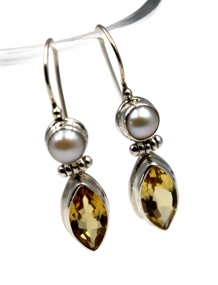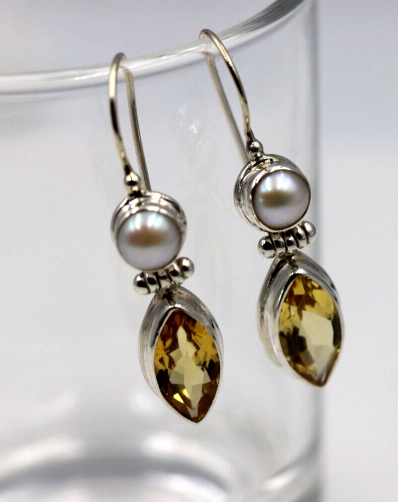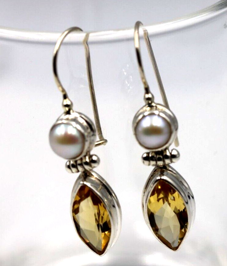 6mm size of pearl 13mm x 6mm genuine citrine stone 37 mm drop |