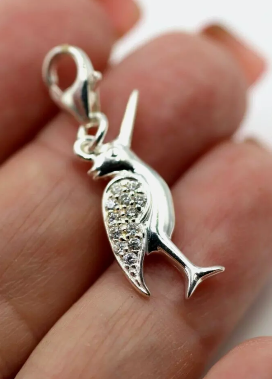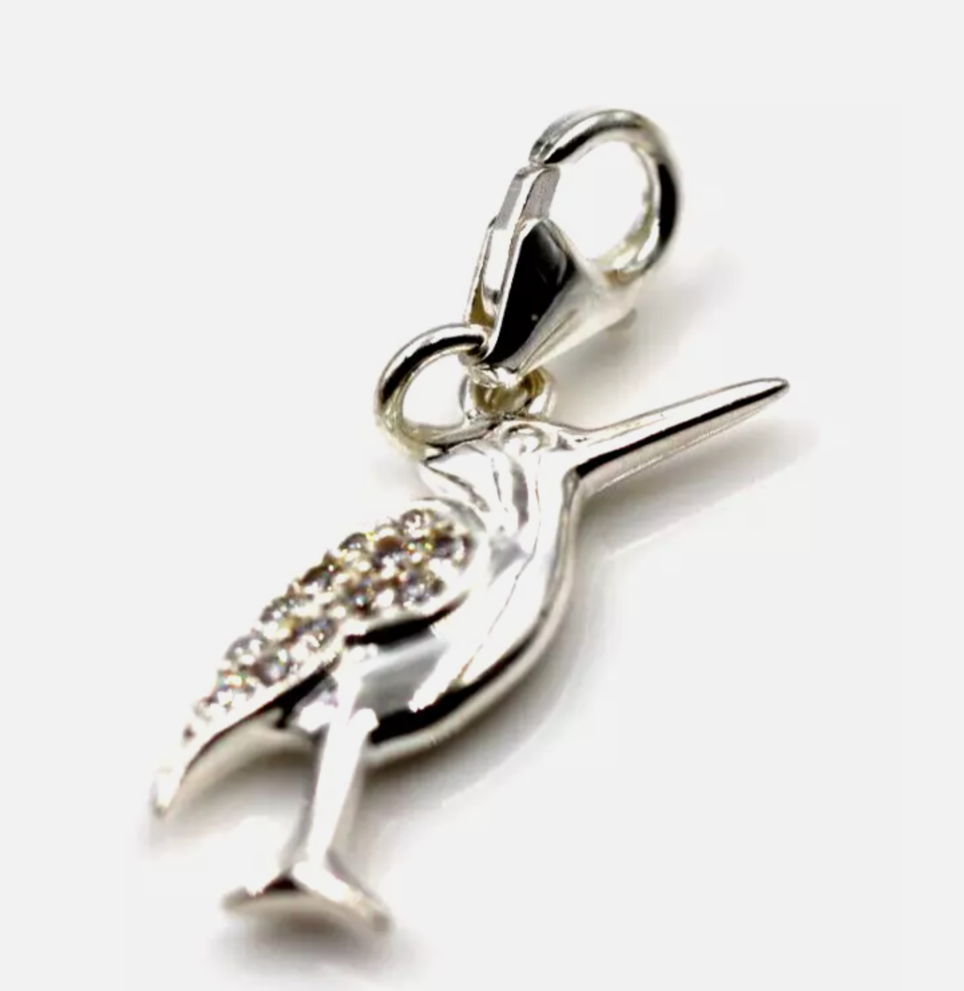 Sterling Silver 925 CZ Bird Charm / Pendant + Lobster Clasp