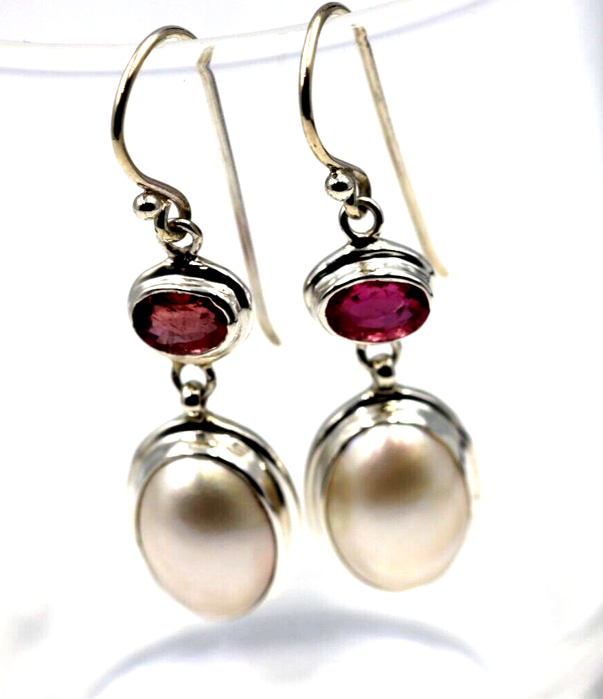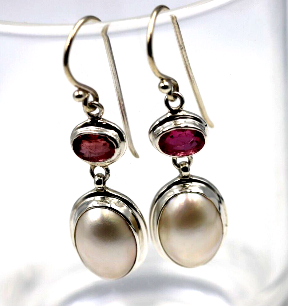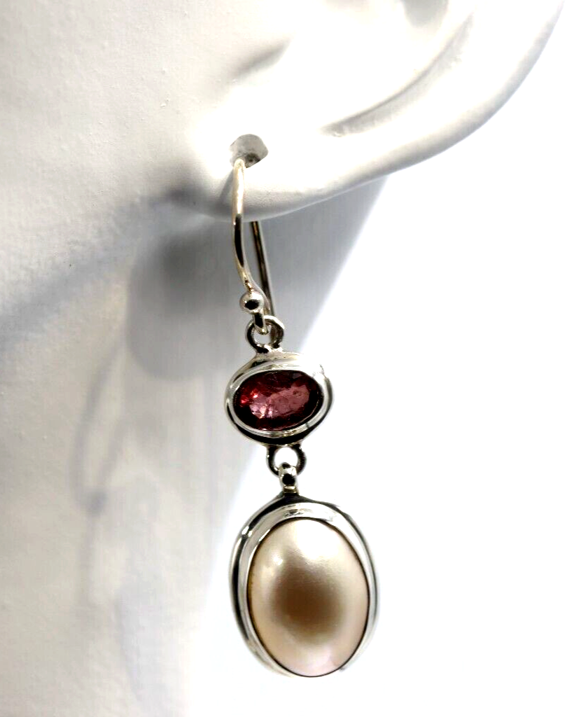 Genuine Sterling Silver Tourmaline & Mabe Pearl Earrings