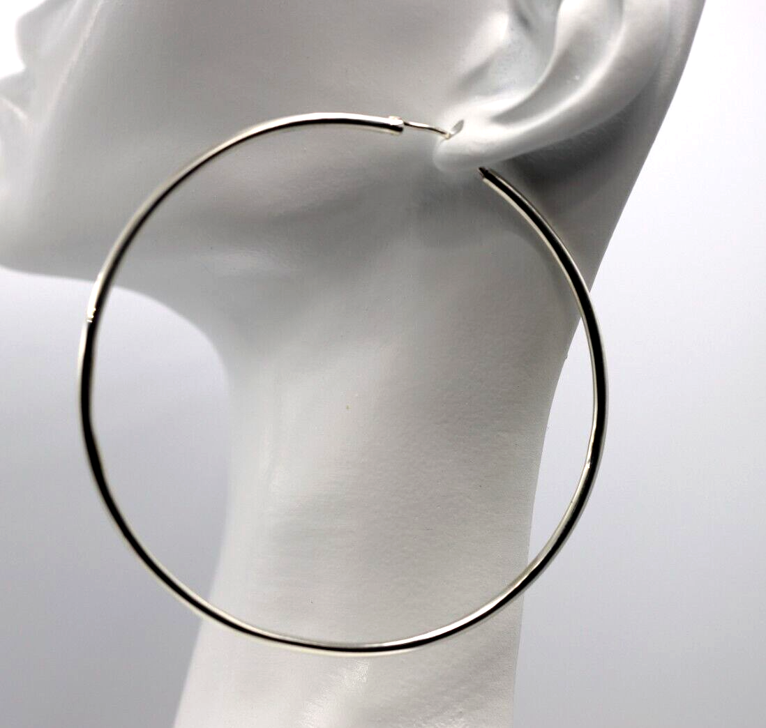 Genuine Very Large 72mm Sterling Silver Hoop 925 Earrings