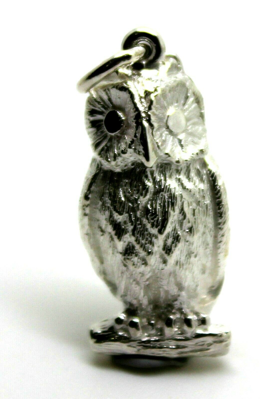Heavy Genuine Sterling Silver 925 3D Heavy Owl Pendant