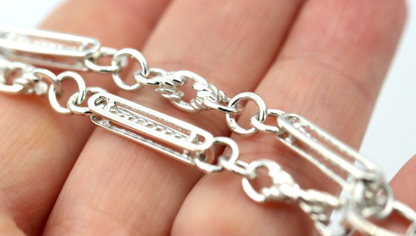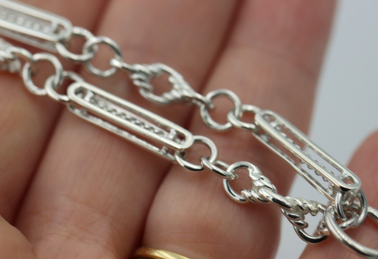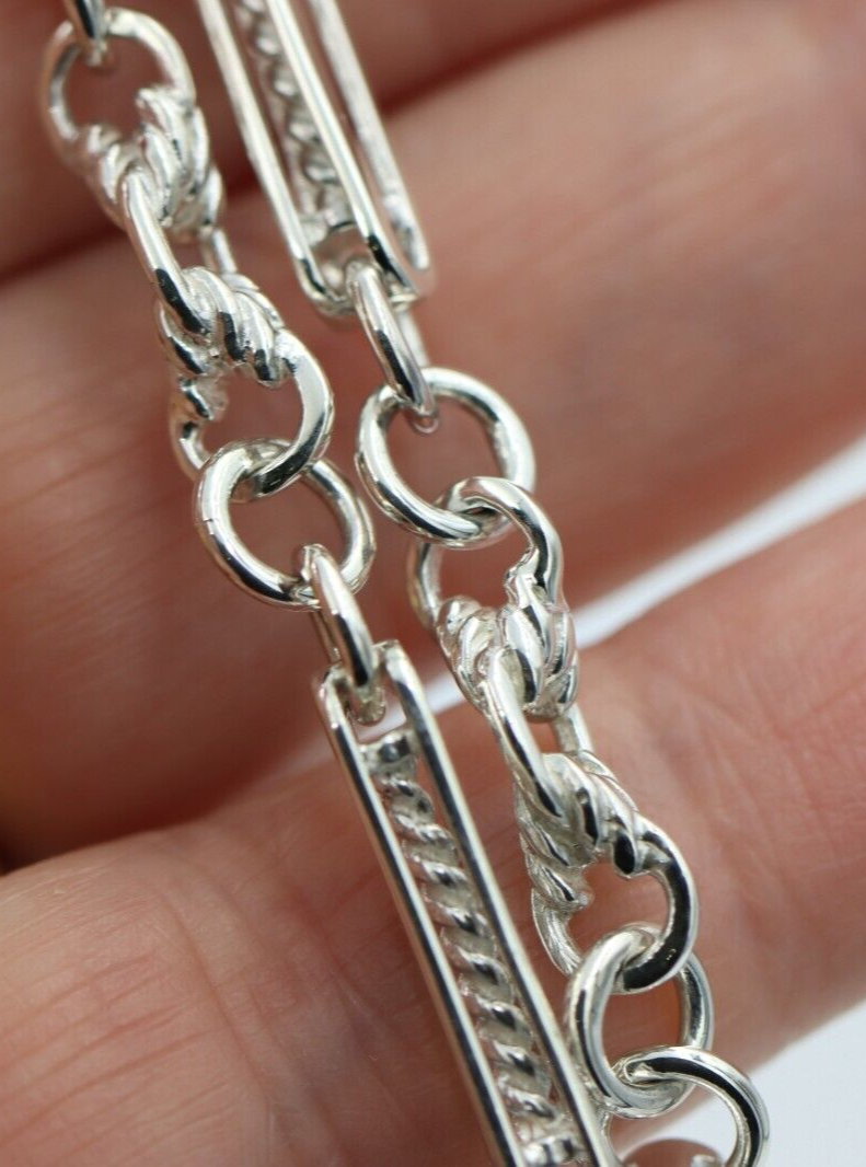Heavy Genuine Sterling Silver Antique Fancy Oval Belcher Link FOB Chain Necklace + T-Bar