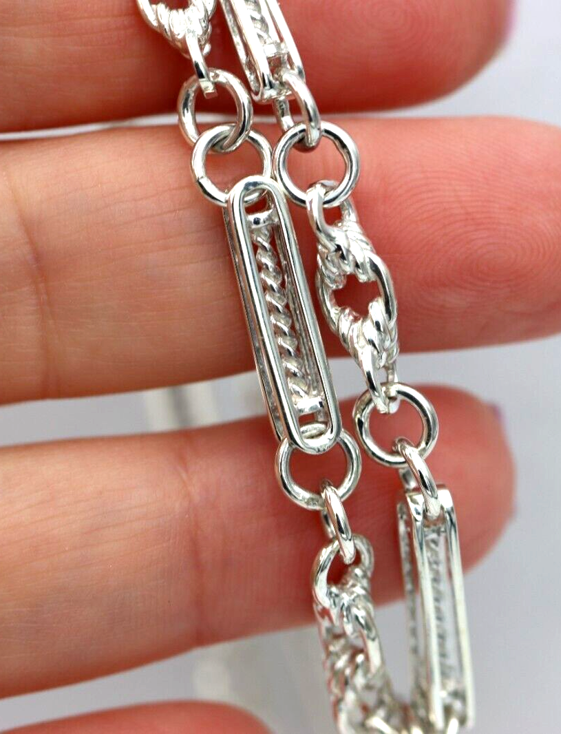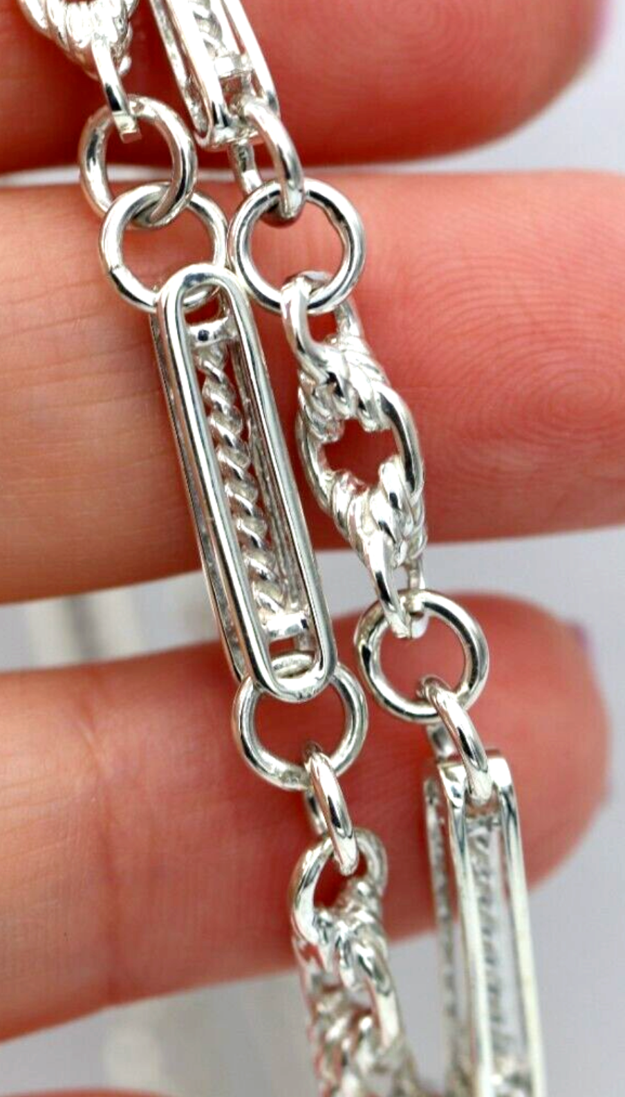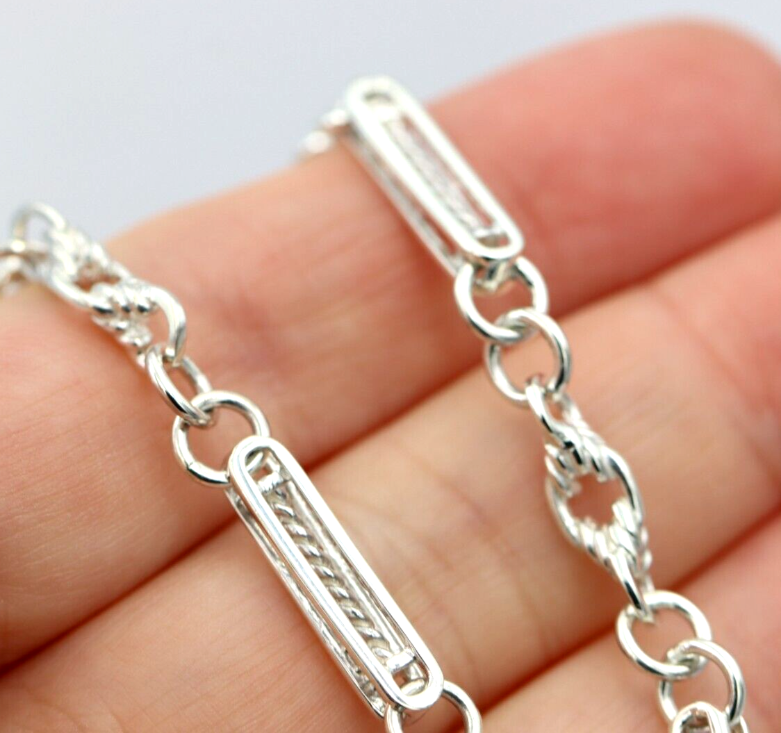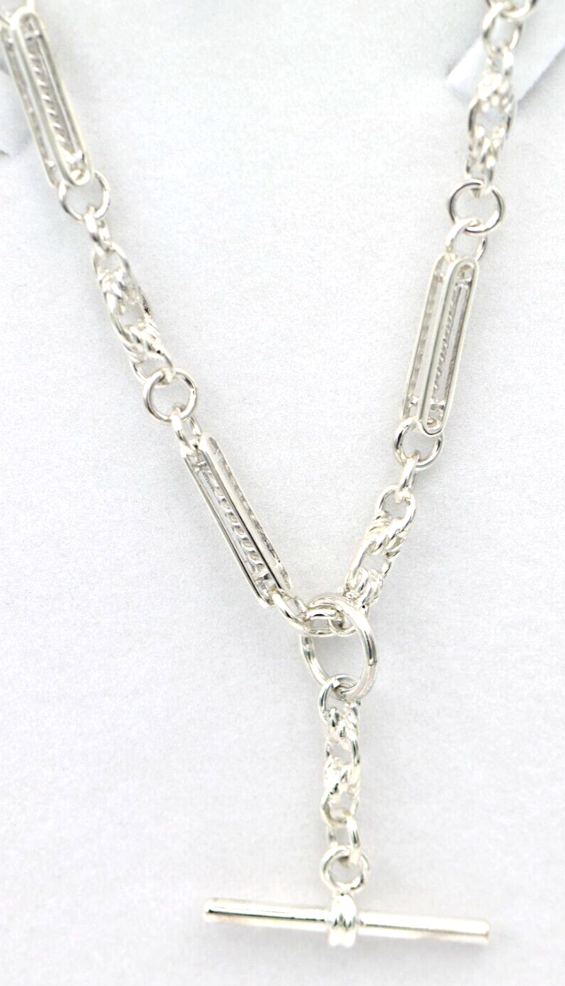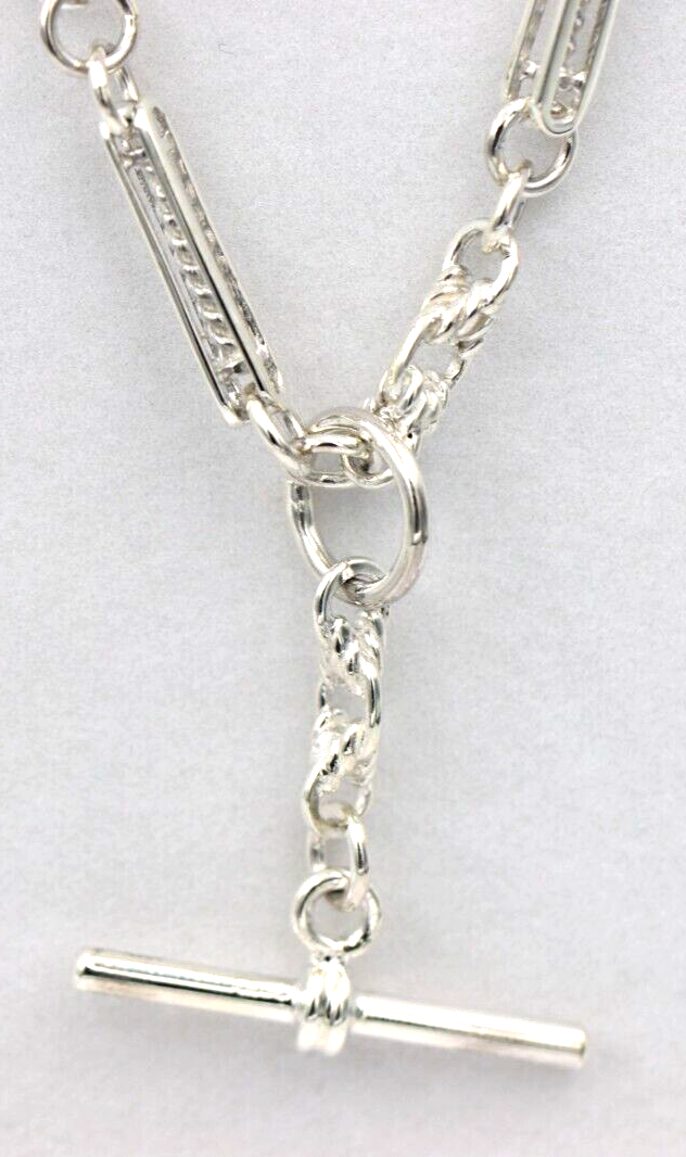 Heavy Genuine Sterling Silver Antique Oval Belcher Link FOB Chain Necklace
