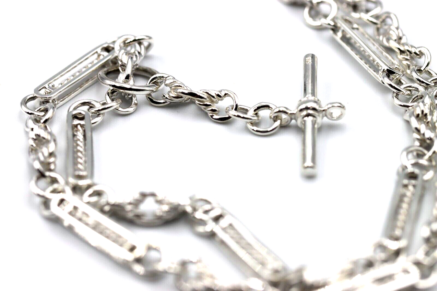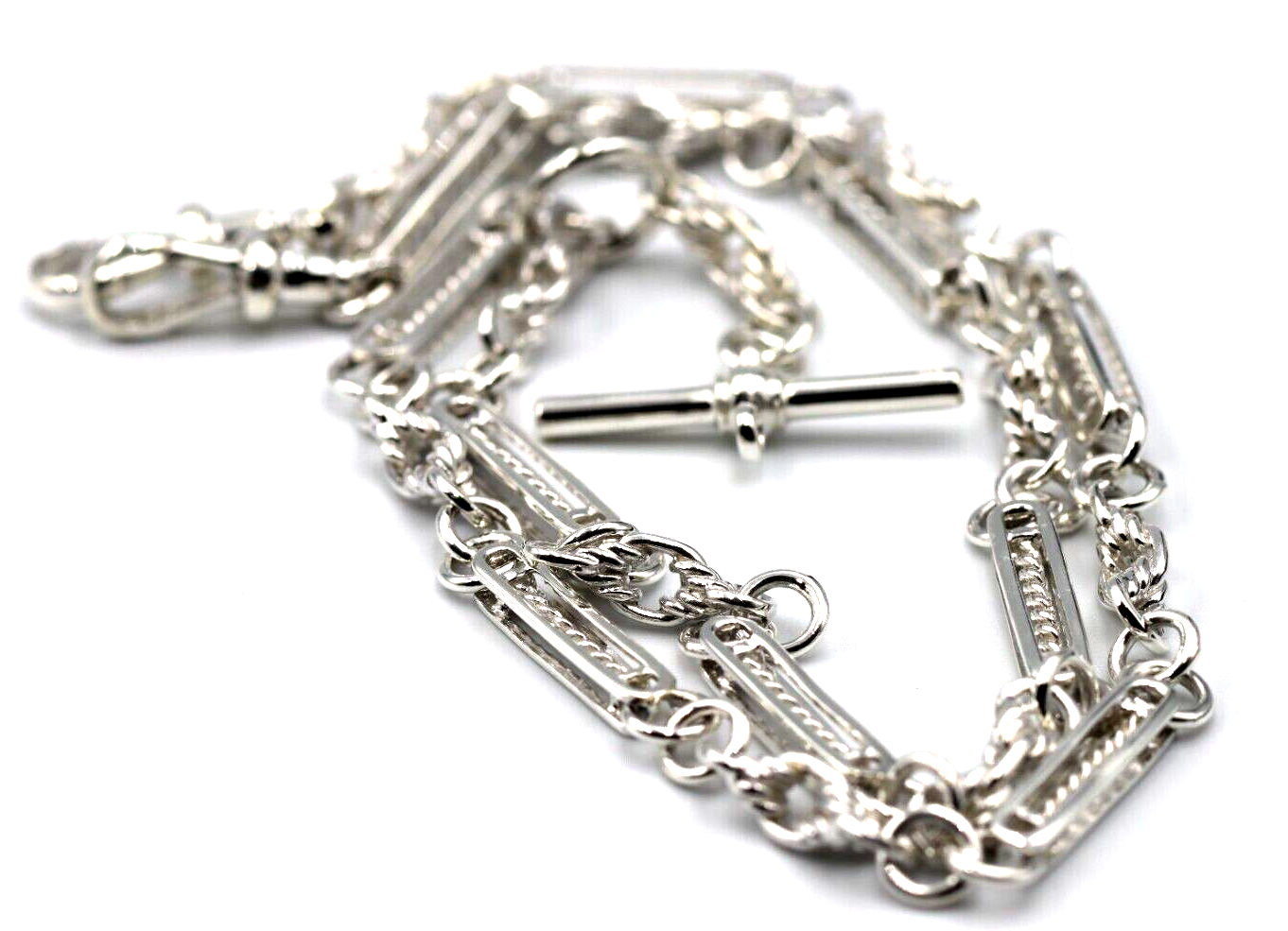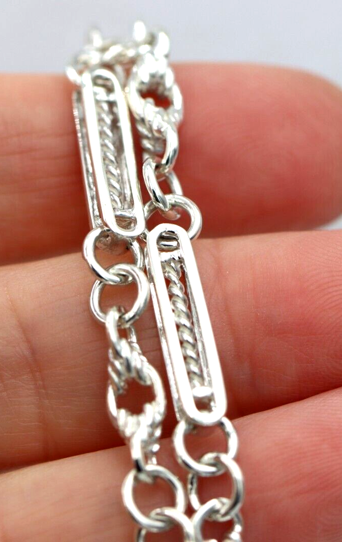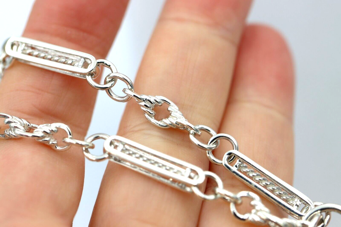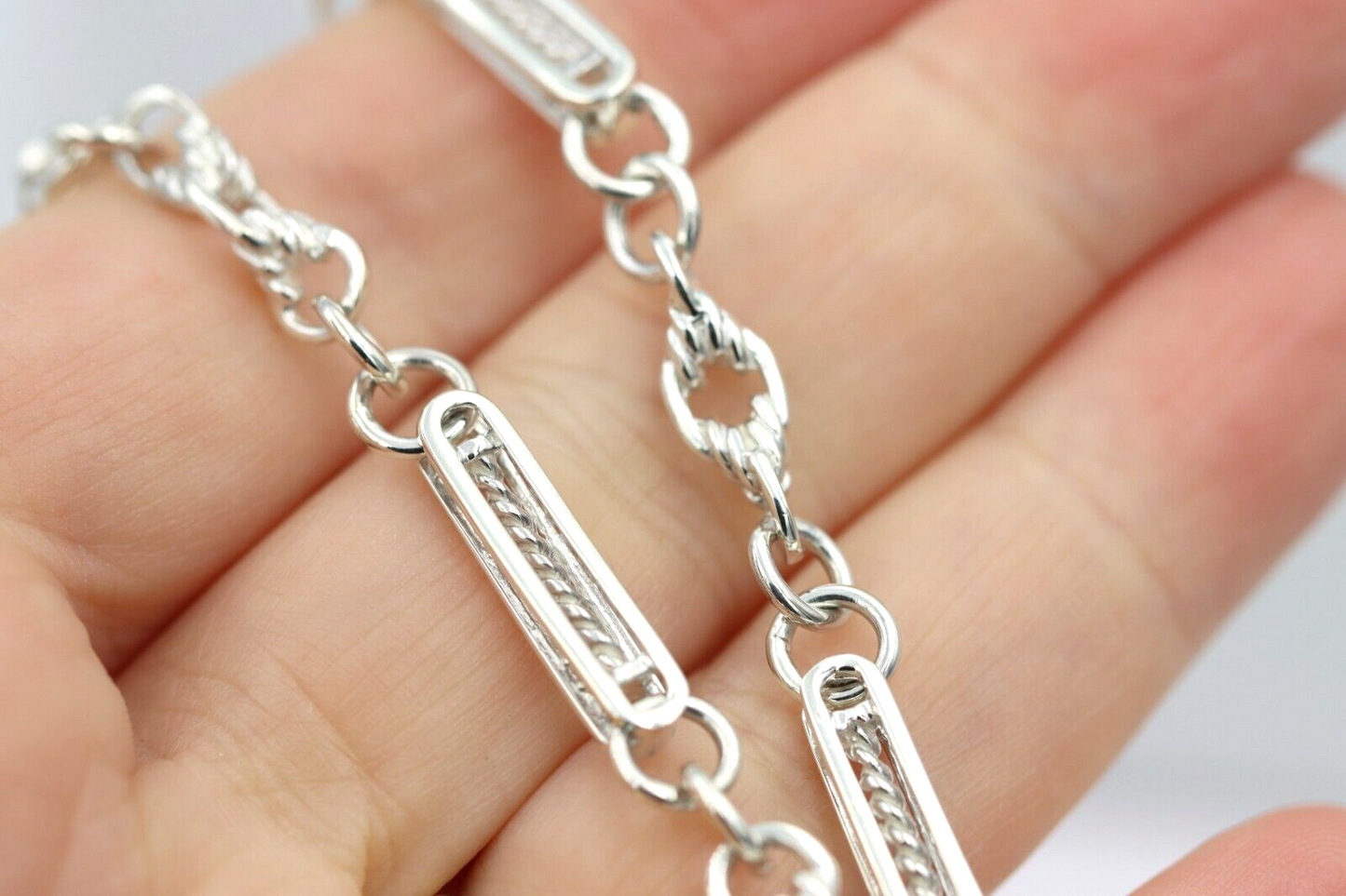 Heavy Genuine Sterling Silver Antique Oval Belcher Link FOB Chain Necklace