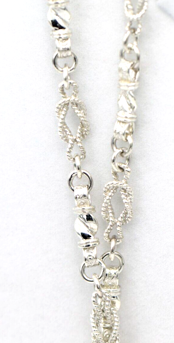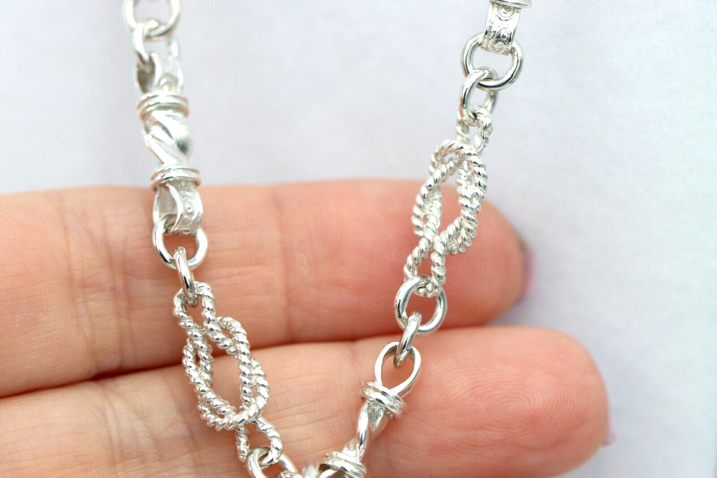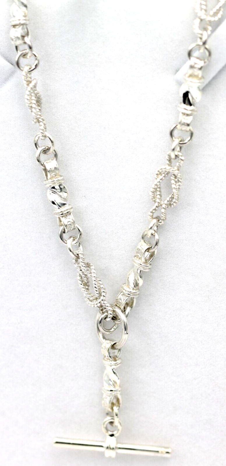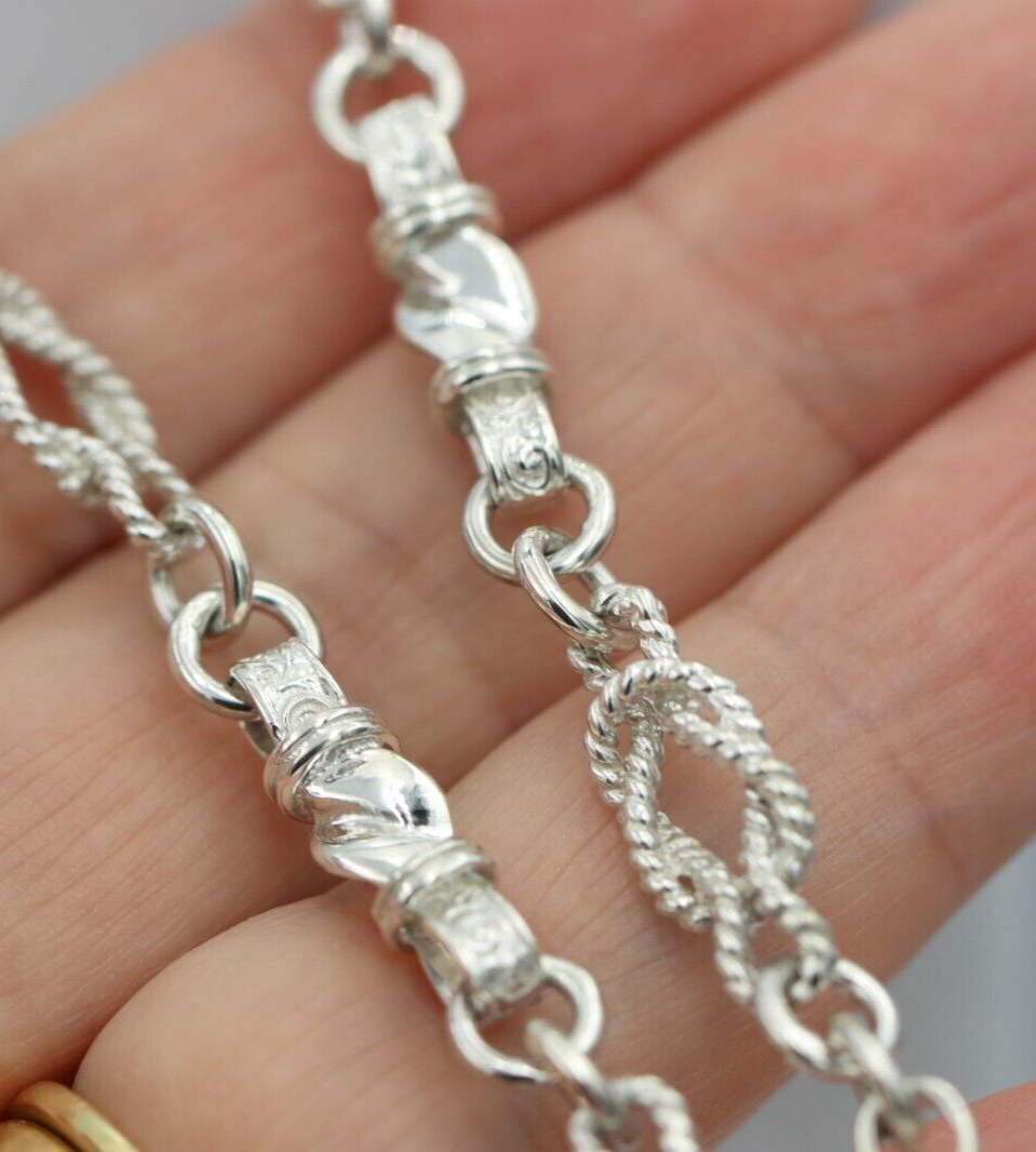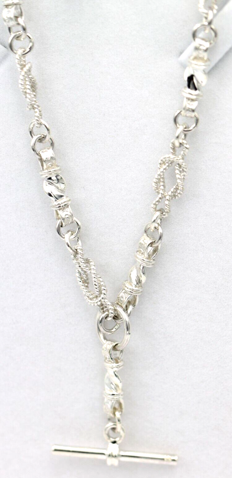 Heavy Genuine Sterling Silver Antique Oval Fancy Links FOB Chain Necklace