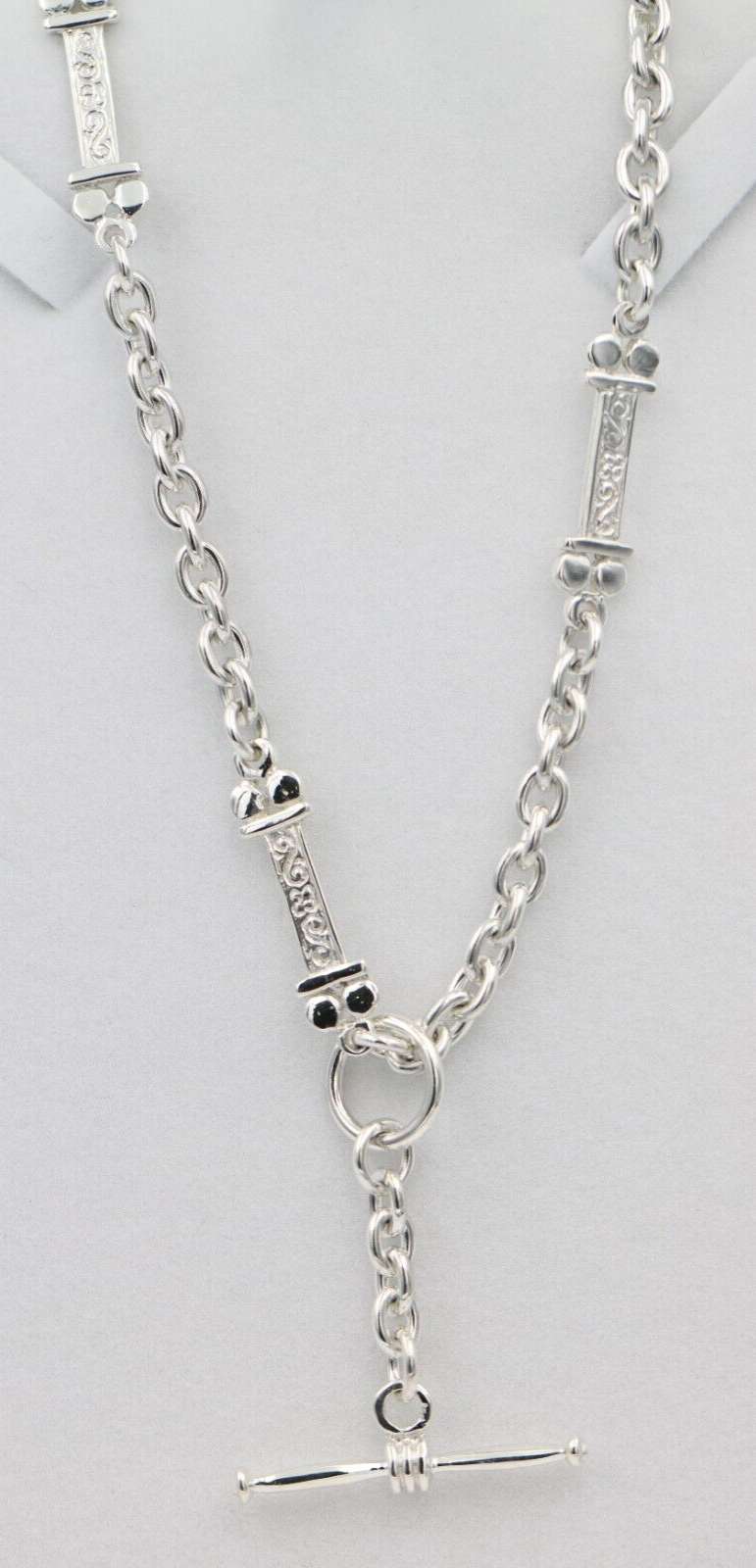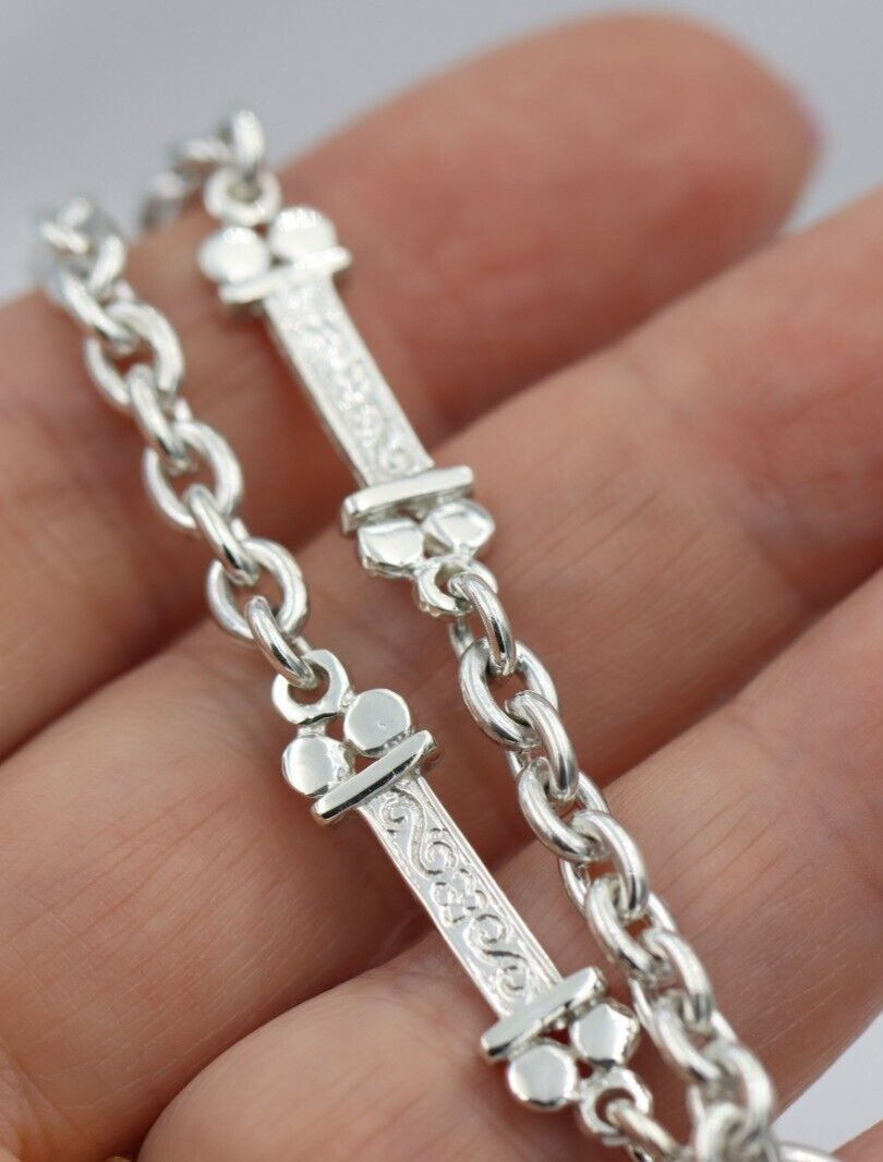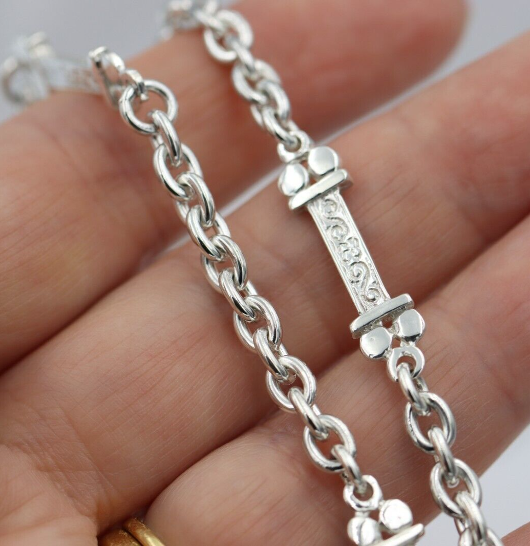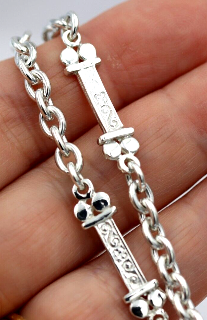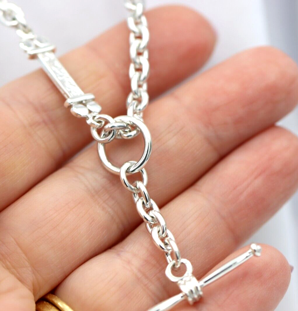 Heavy Genuine Sterling Silver Antique Oval / Fancy Links FOB Chain Necklace