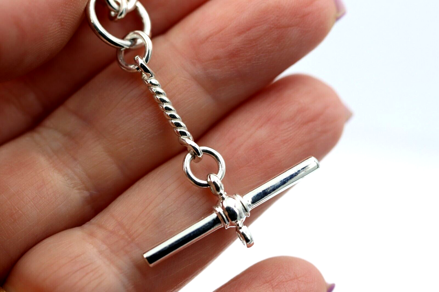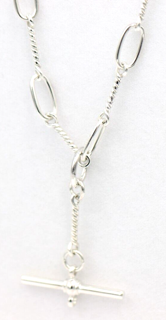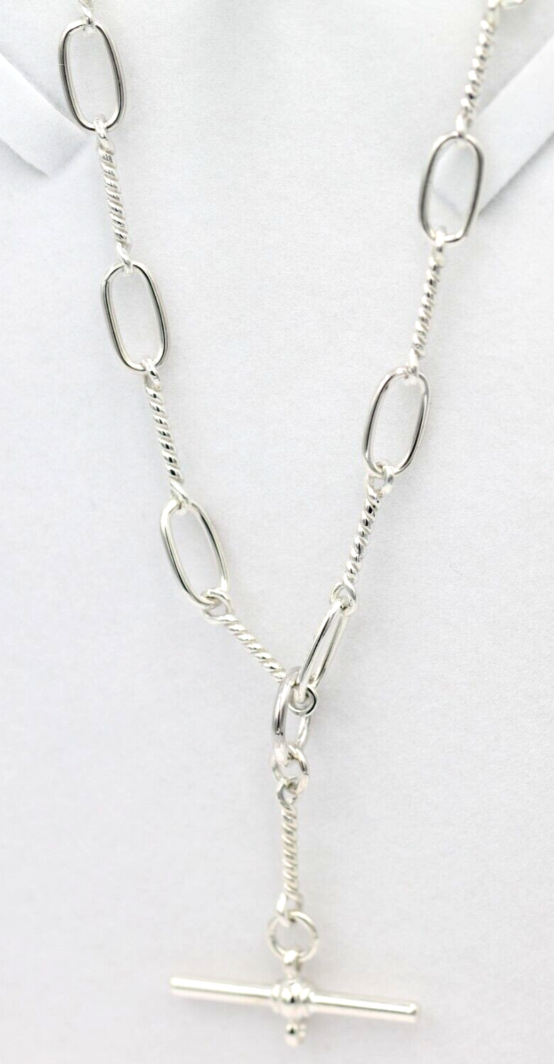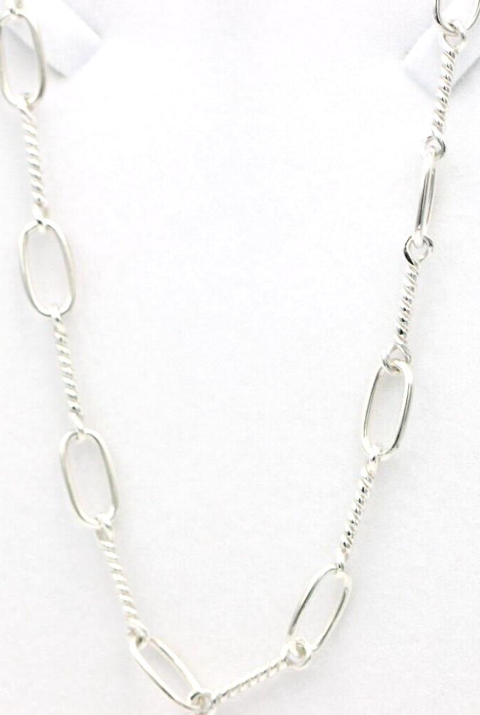Heavy Genuine Sterling Silver Antique Oval Paperclip Links FOB Chain Necklace