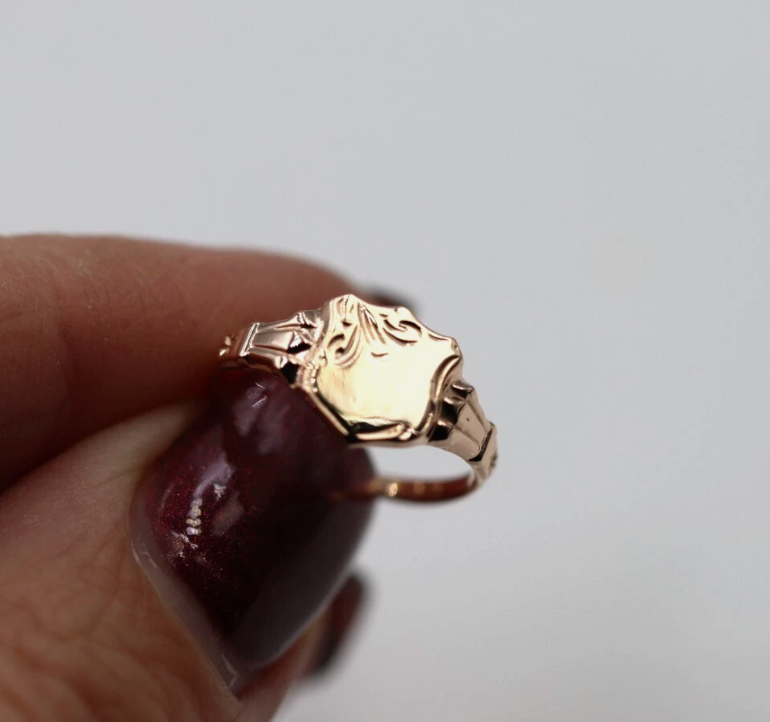 Size K, Kaedesigns New Childs Solid 9ct 9k Yellow, Rose or White Gold Shield Signet Ring