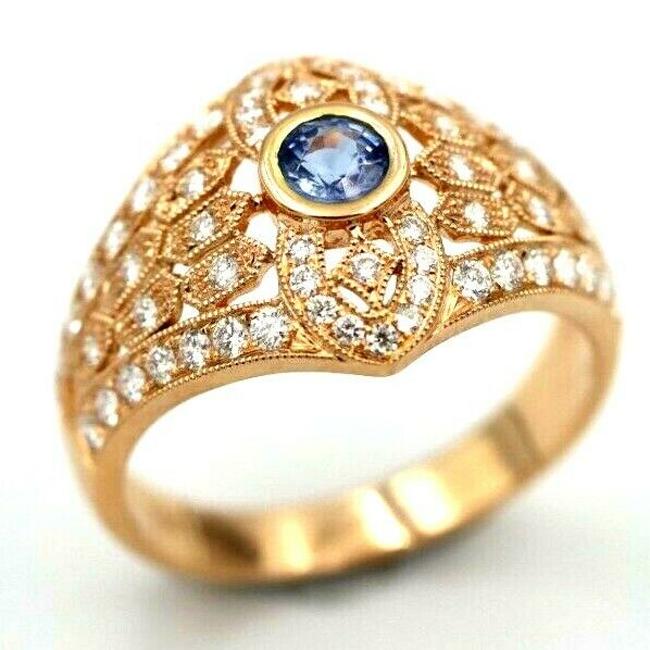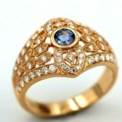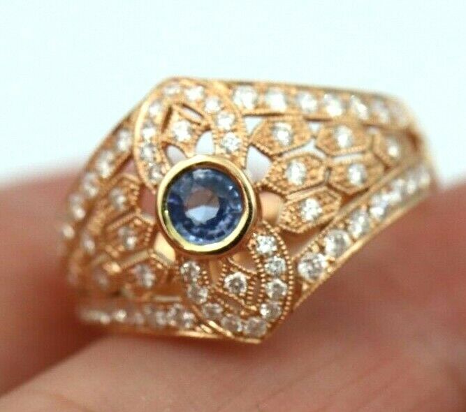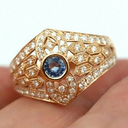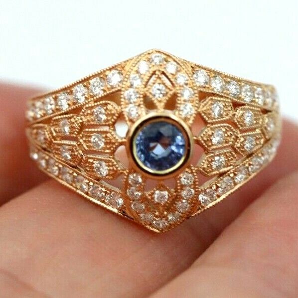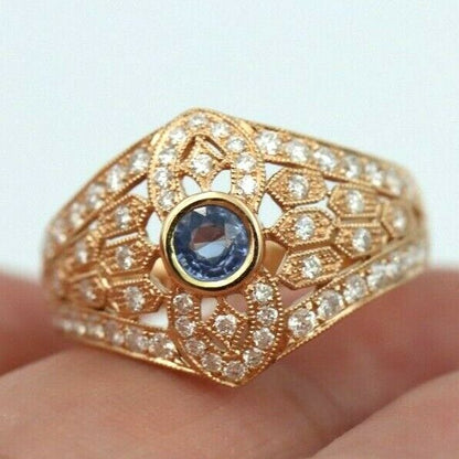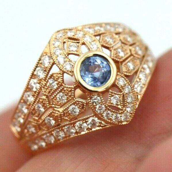 Kaedesigns New Genuine 18ct Rose Gold Blue Sapphire Diamond Dress Ring * Free Express Postage Post