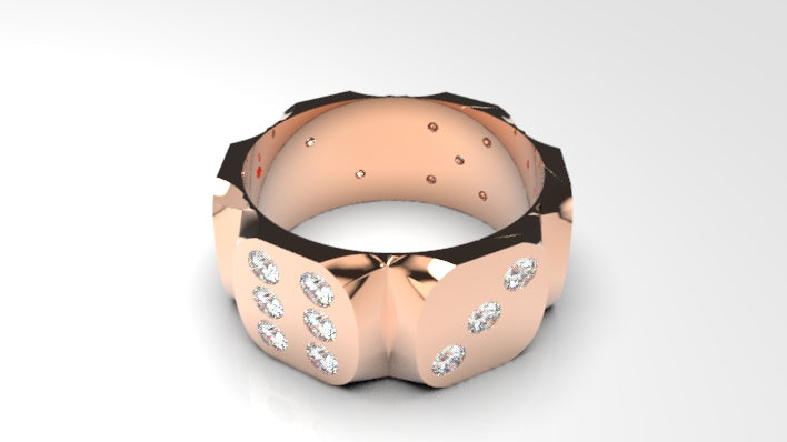Kaedesigns Size X 10mm Wide Solid 9ct Yellow, Rose or White Cubic ZIrconia Dice Ring
