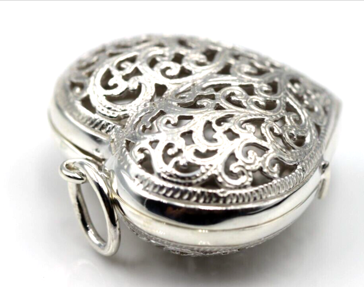 Heavy Large Genuine Sterling Silver 925 Filigree Heart Pendant Locket