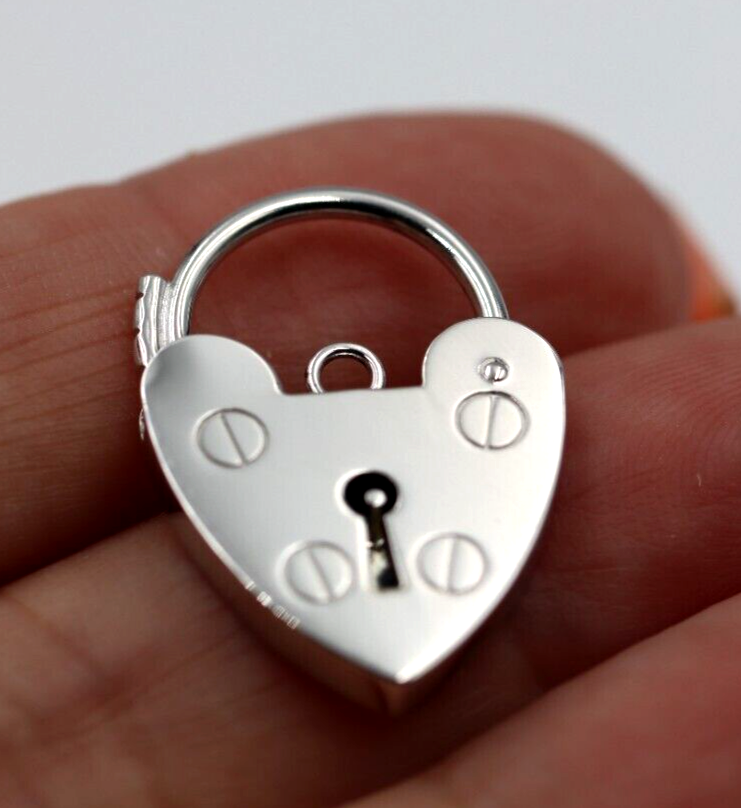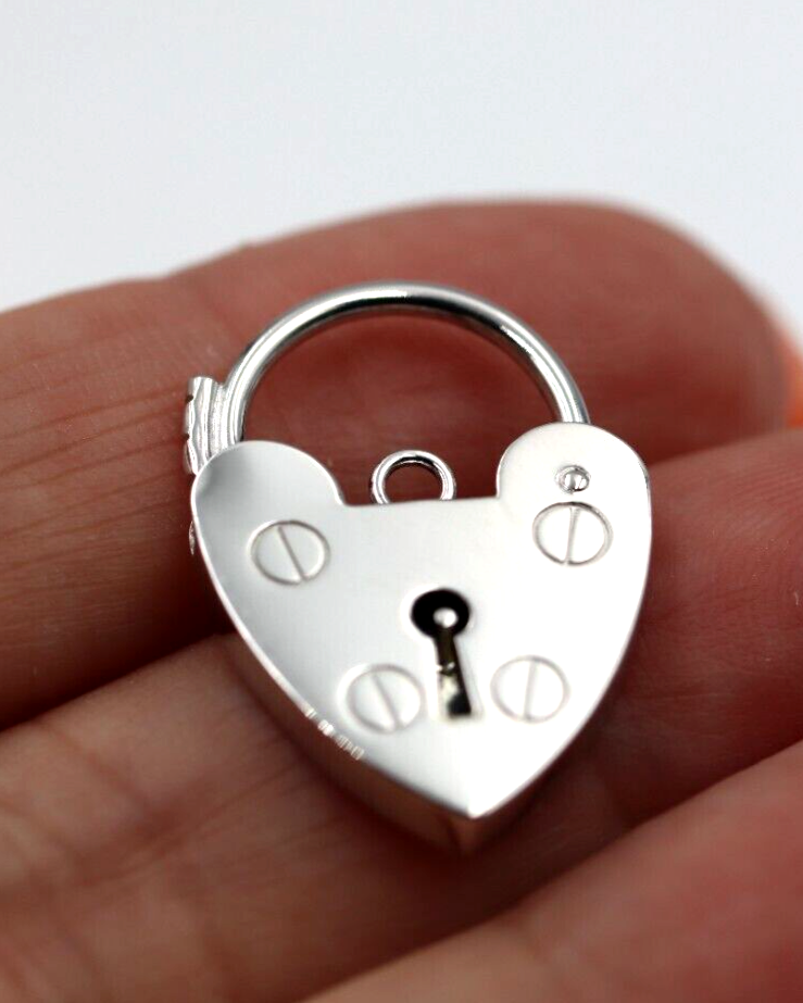Medium 15mm Sterling Silver 925 Screw Heart Pendant Padlock