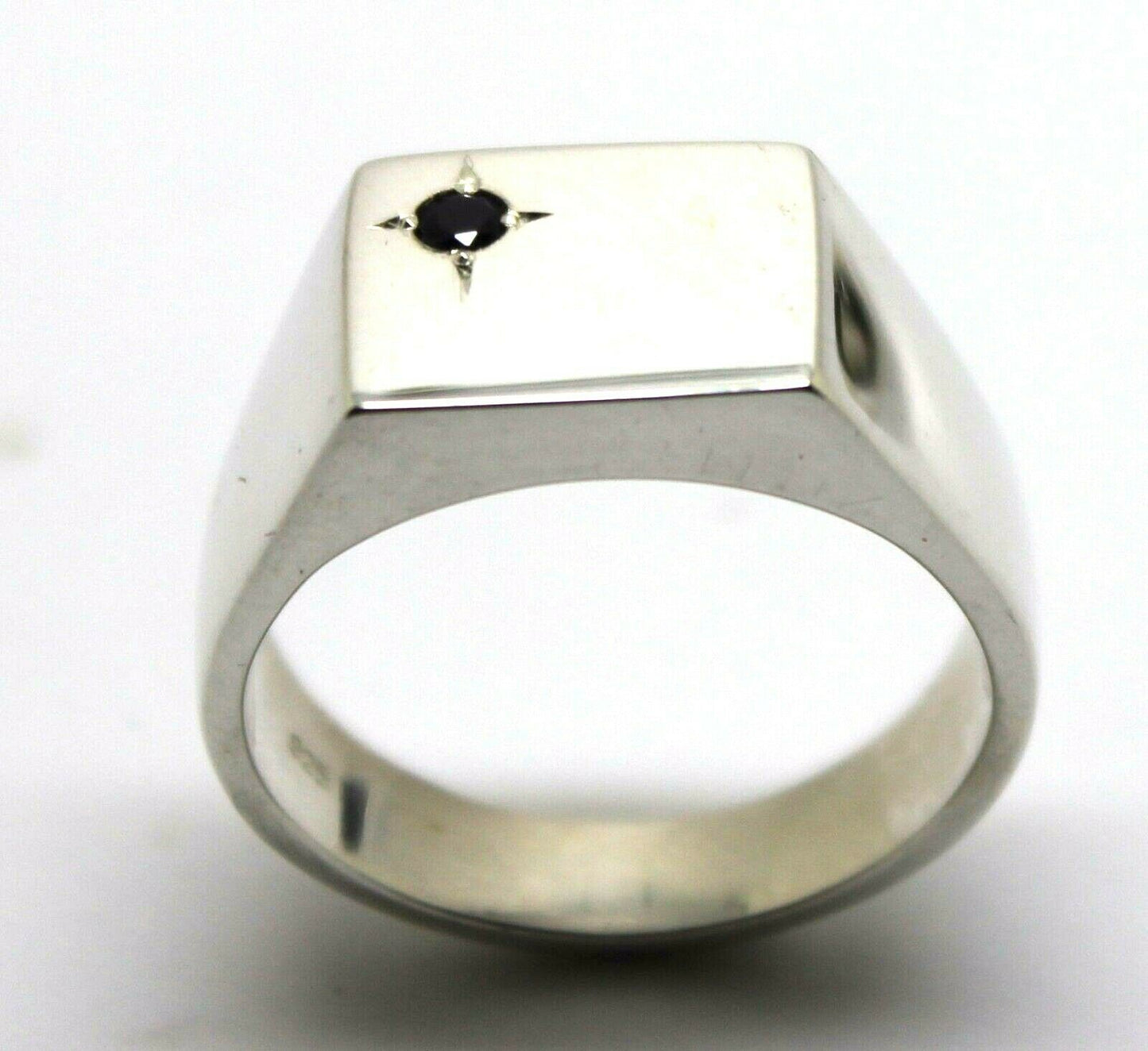 Size W Mens Solid Sterling Silver Black Sapphire Square Signet Ring