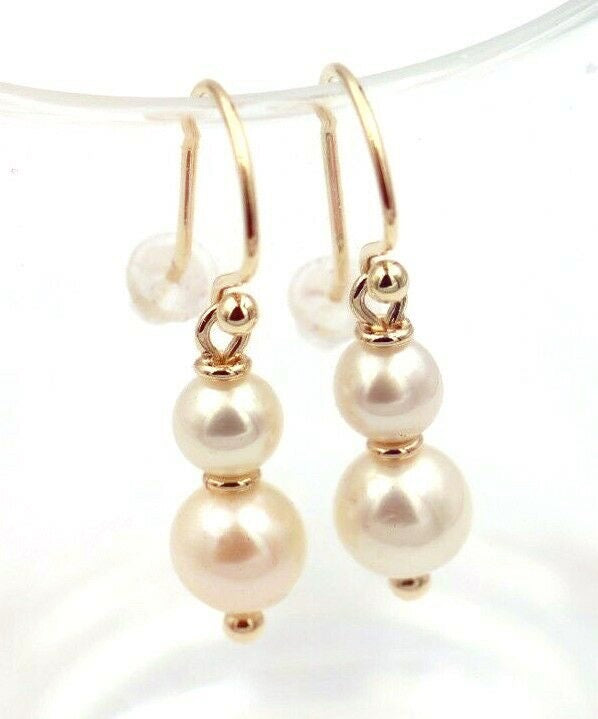 New 9ct 9k Yellow, Rose or White Gold 6mm & 8mm White Pearl With Open hooks Earrings