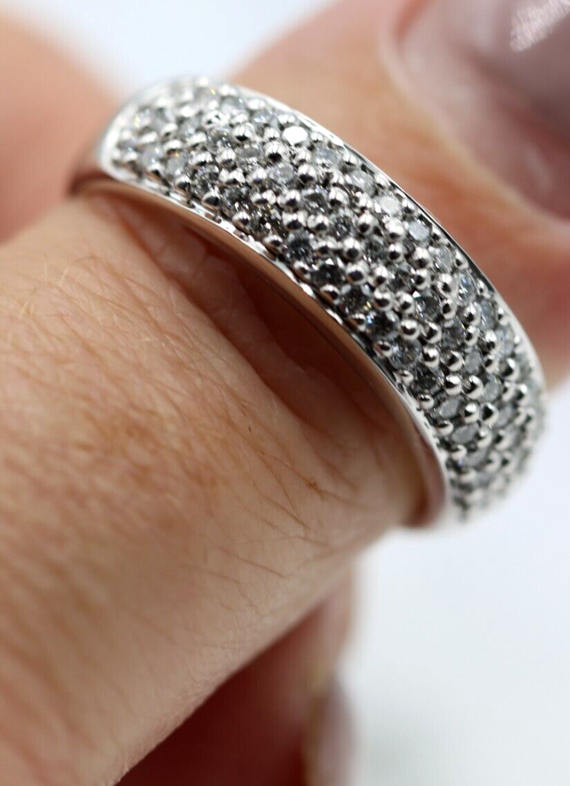 Aus/UK U, , US -10 1/4 (May be resized for a small additional price, please email me for details) Genuine diamonds S1 / G colour 55 genuine diamonds 6.9mm wide tapers down to 5.9mm |