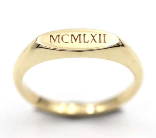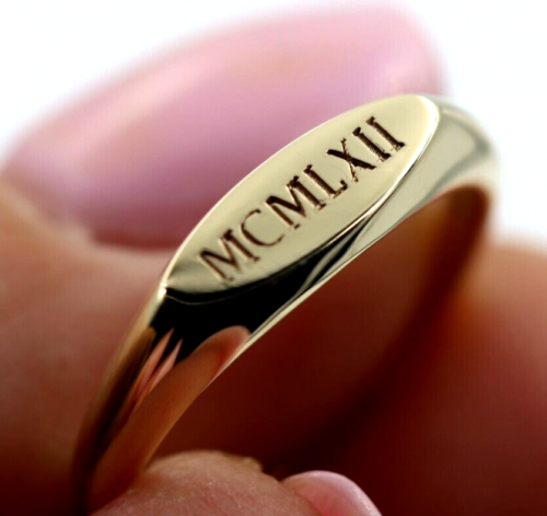 Genuine Solid 9ct Yellow, Rose or White Gold Signet Ring Engraved Initials or Numbers