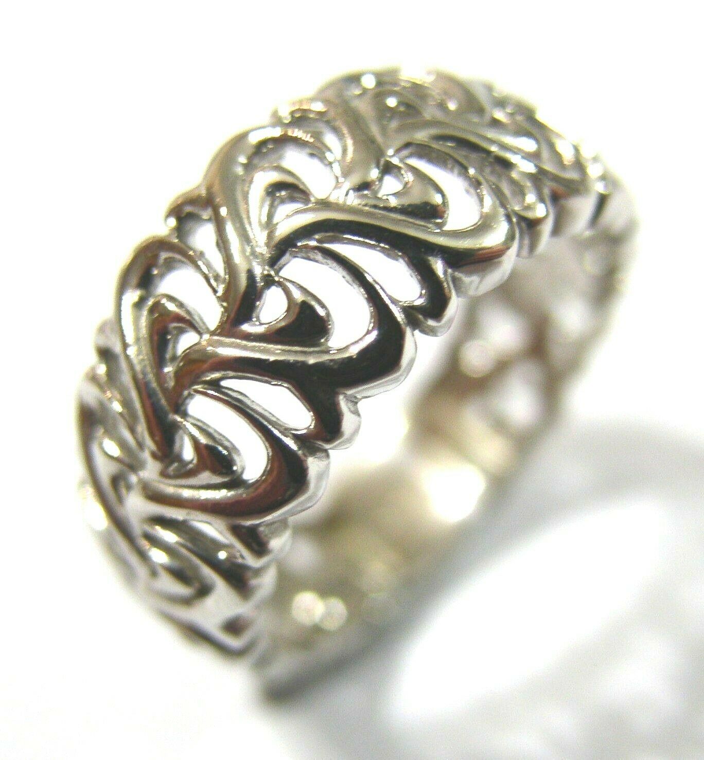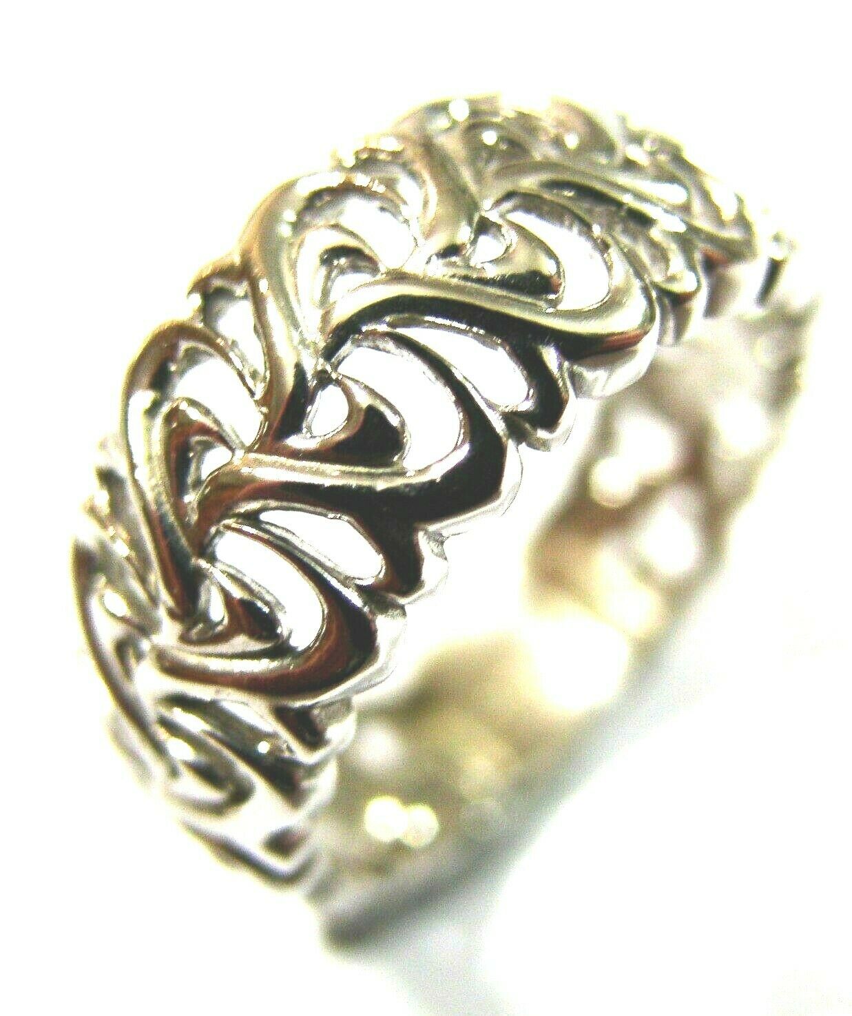 Genuine Size O 9ct 375 White Gold Wide Flower Filigree Ring