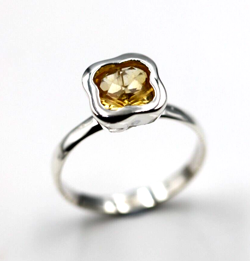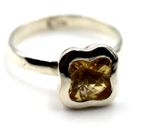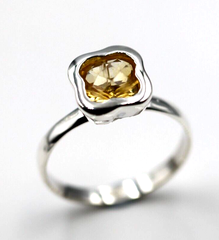 Size N Genuine Sterling Silver Yellow Citrine Clover Ring