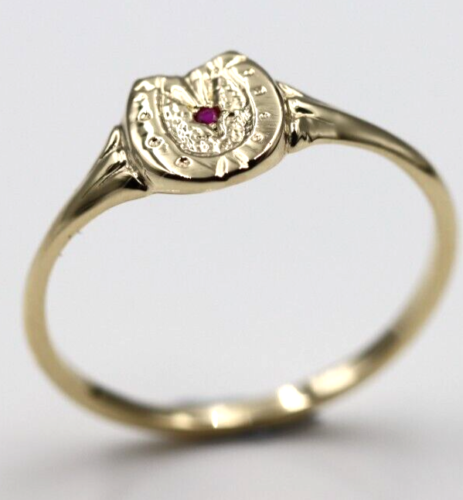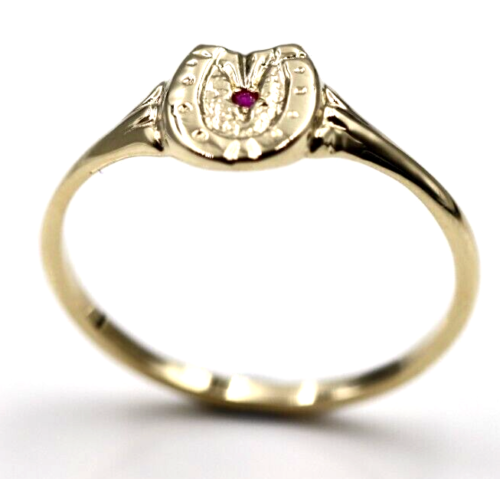 Size S Ruby Set 9ct 9Kt Yellow, Rose or White Gold / 375, Childs Lucky Horseshoe Ring
