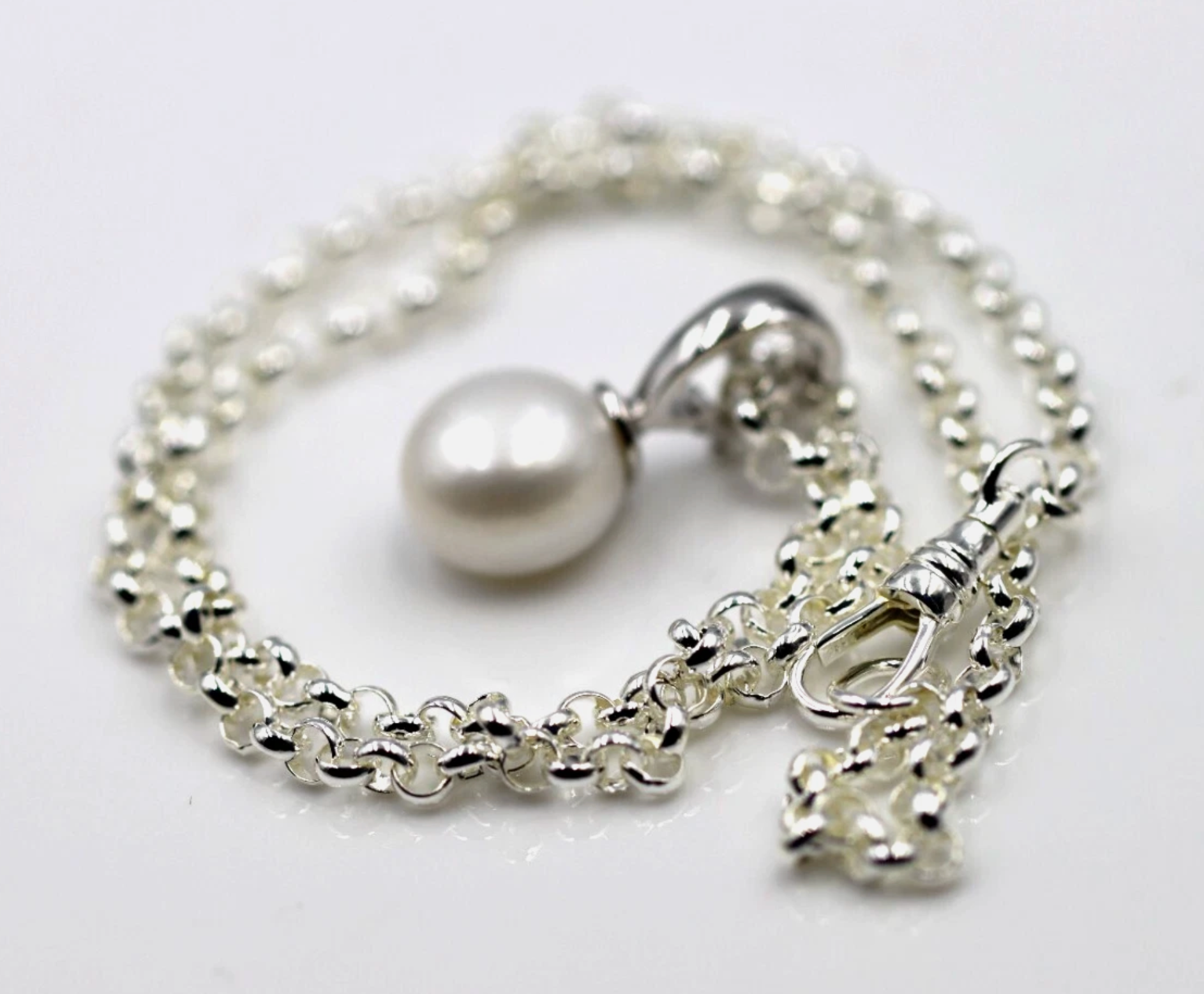 12mm button freshwater pearl (enhancer clasp) 45cm chain 3.4mm belcher link Swivel clasp |