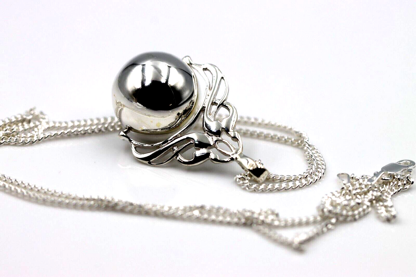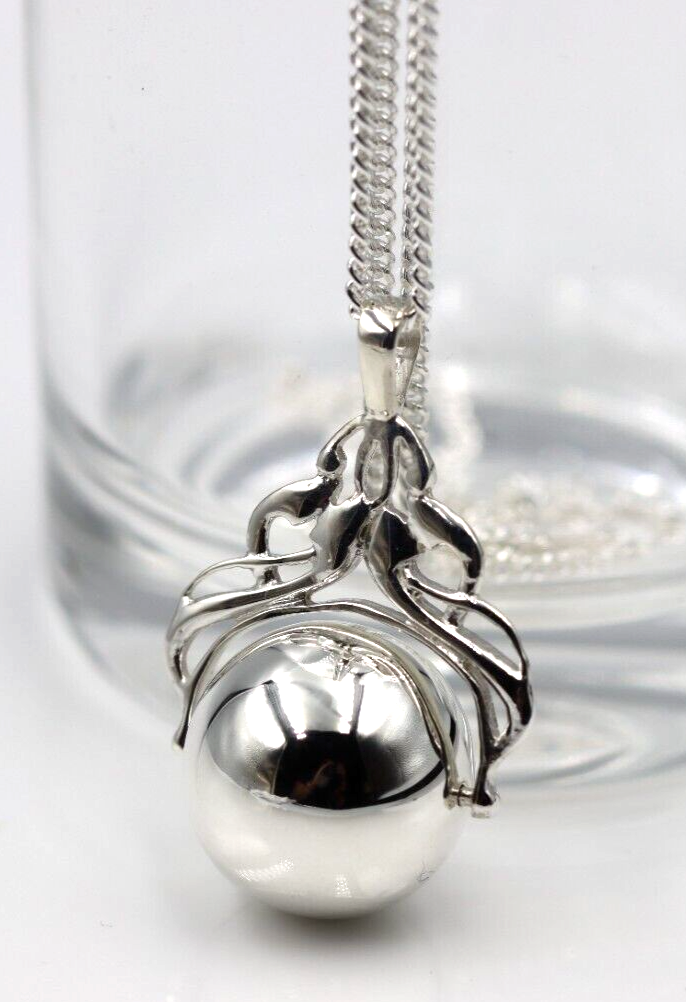 Sterling Silver 925 16mm Plain Ball Spinner Pendant + Necklace Chain