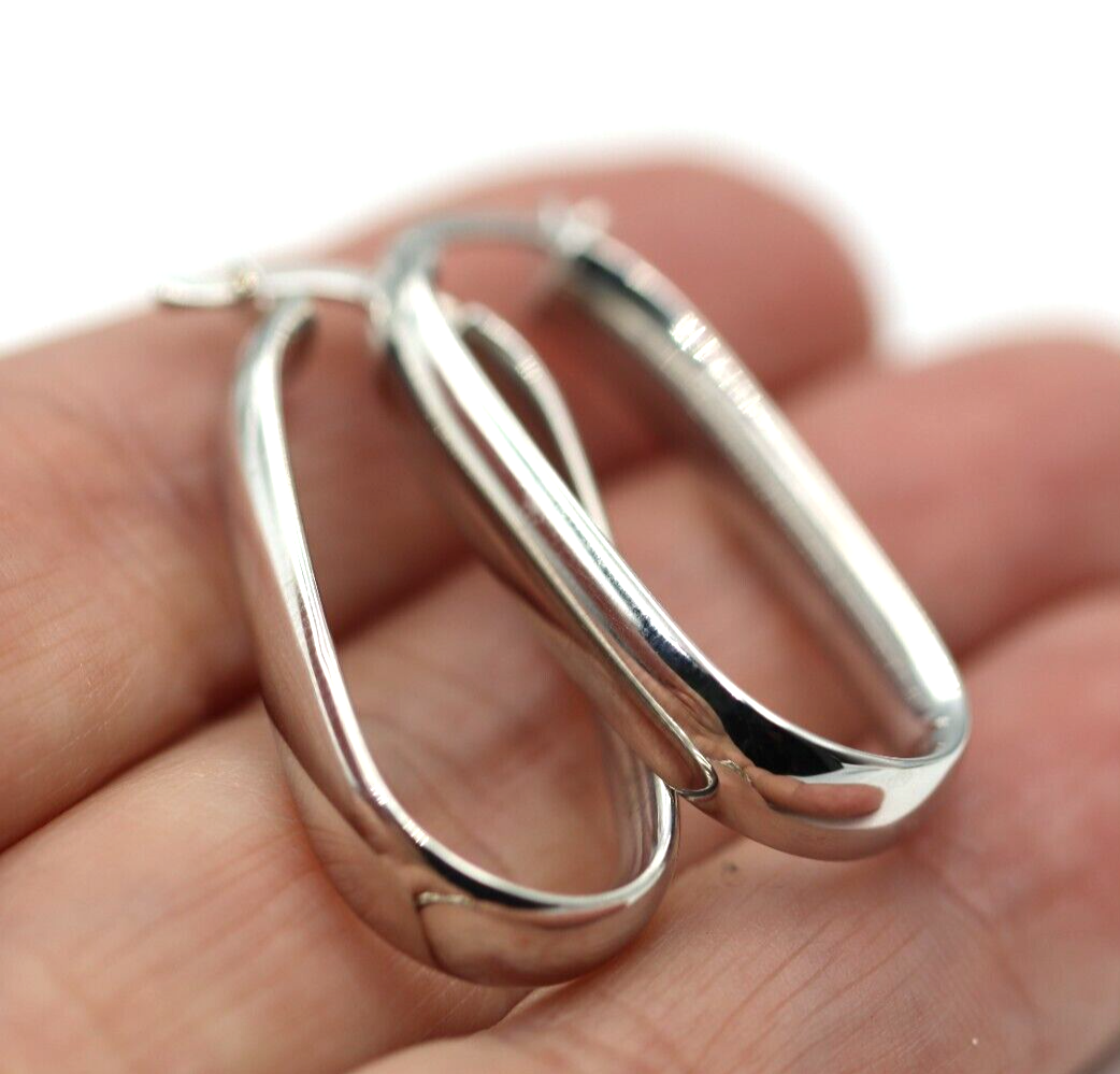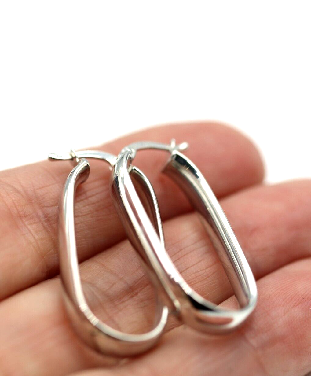 Sterling Silver 925 Lightweight Fancy Oval Hoop Earrings
