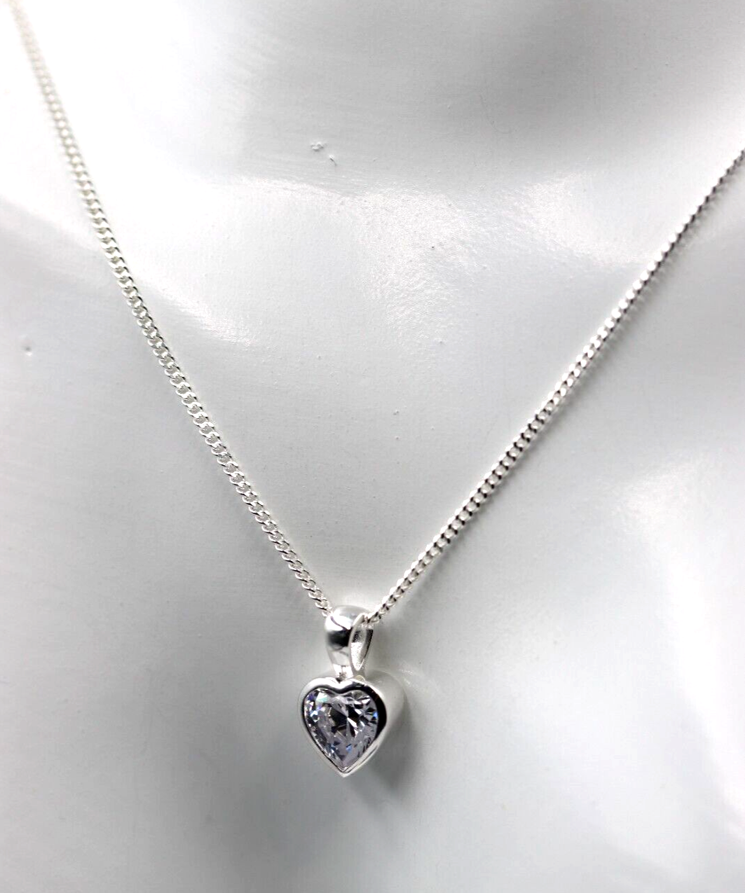 Sterling Silver 925 Small Bezel Set CZ Heart Pendant Charm Necklace