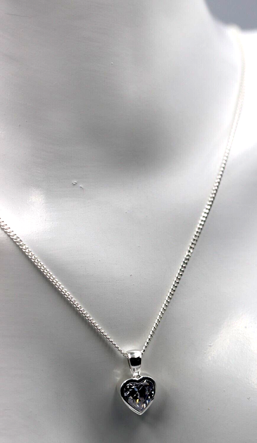 8mm x 9mm size of heart Bail size 3mm opening Stone is a cubic zirconia Chain included 1.4mm wide 50cm long |