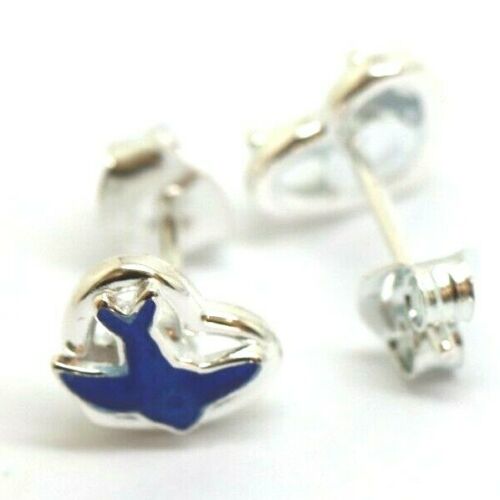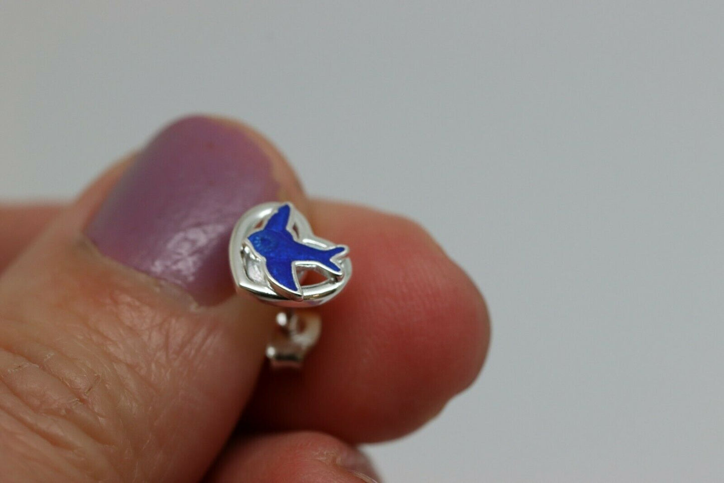 Sterling Silver 925 Children Child Stud Earrings Enamel Bluebird