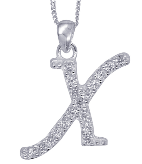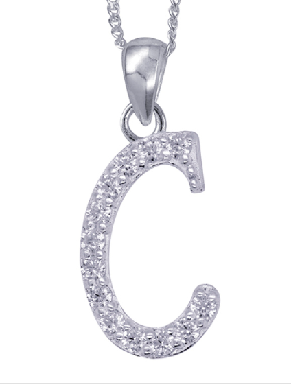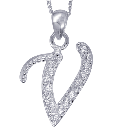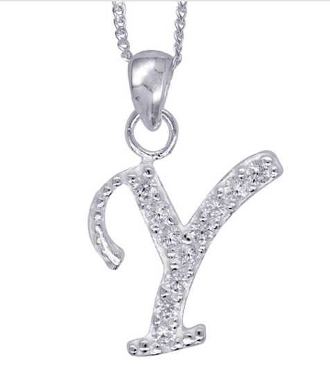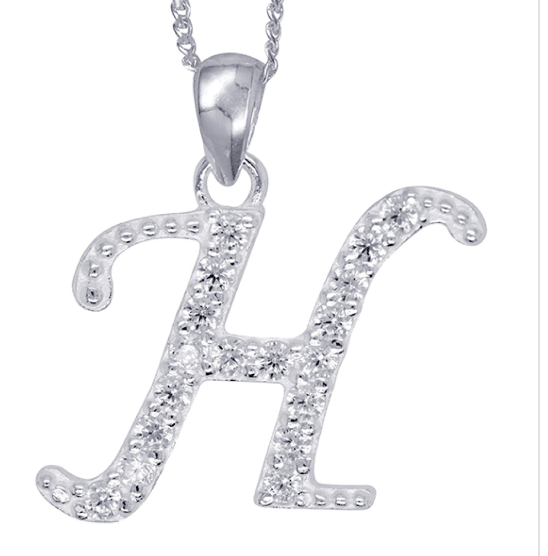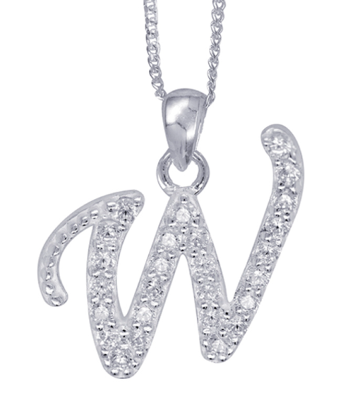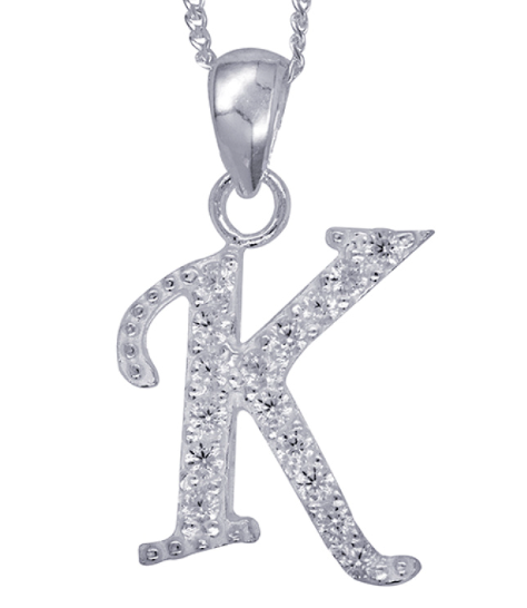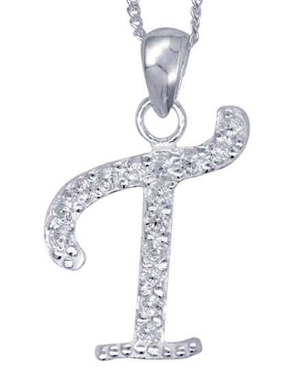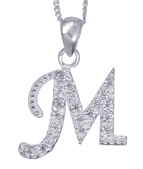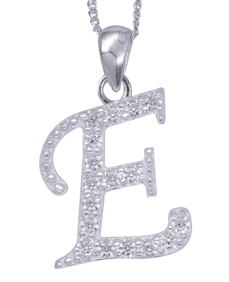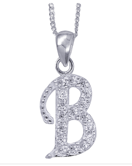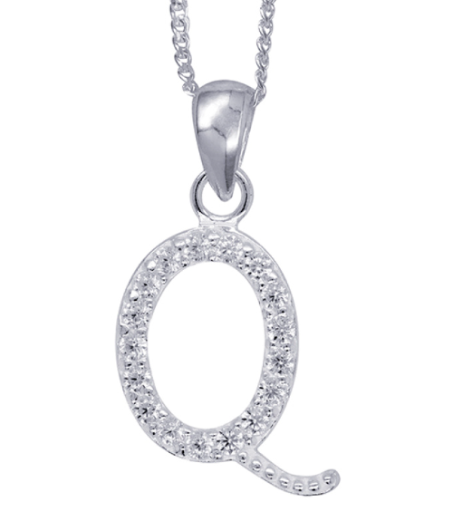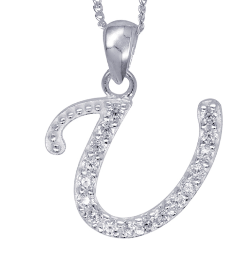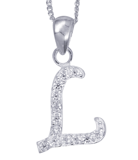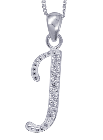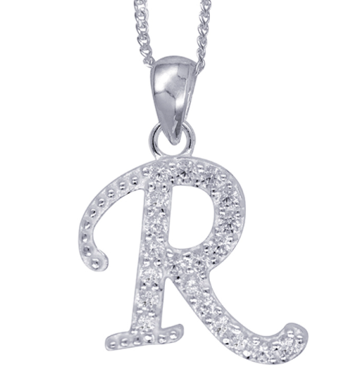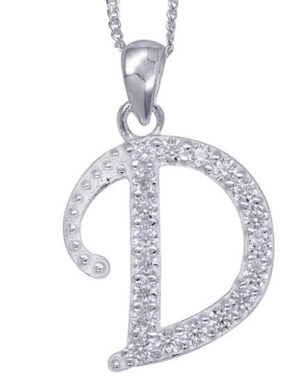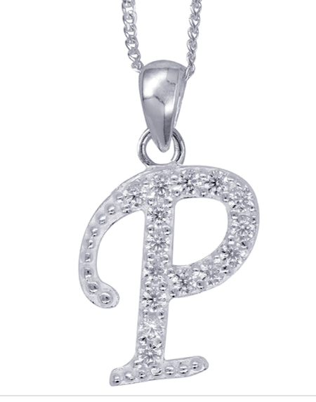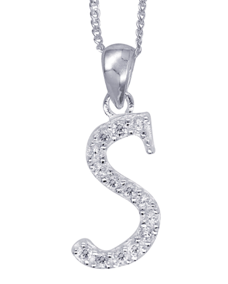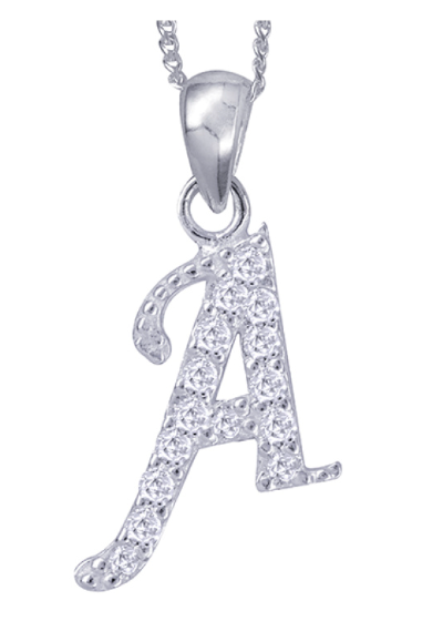 Sterling Silver Cubic Zirconia Initial Pendants A to Z with 45cm + 5cm Extender Chain