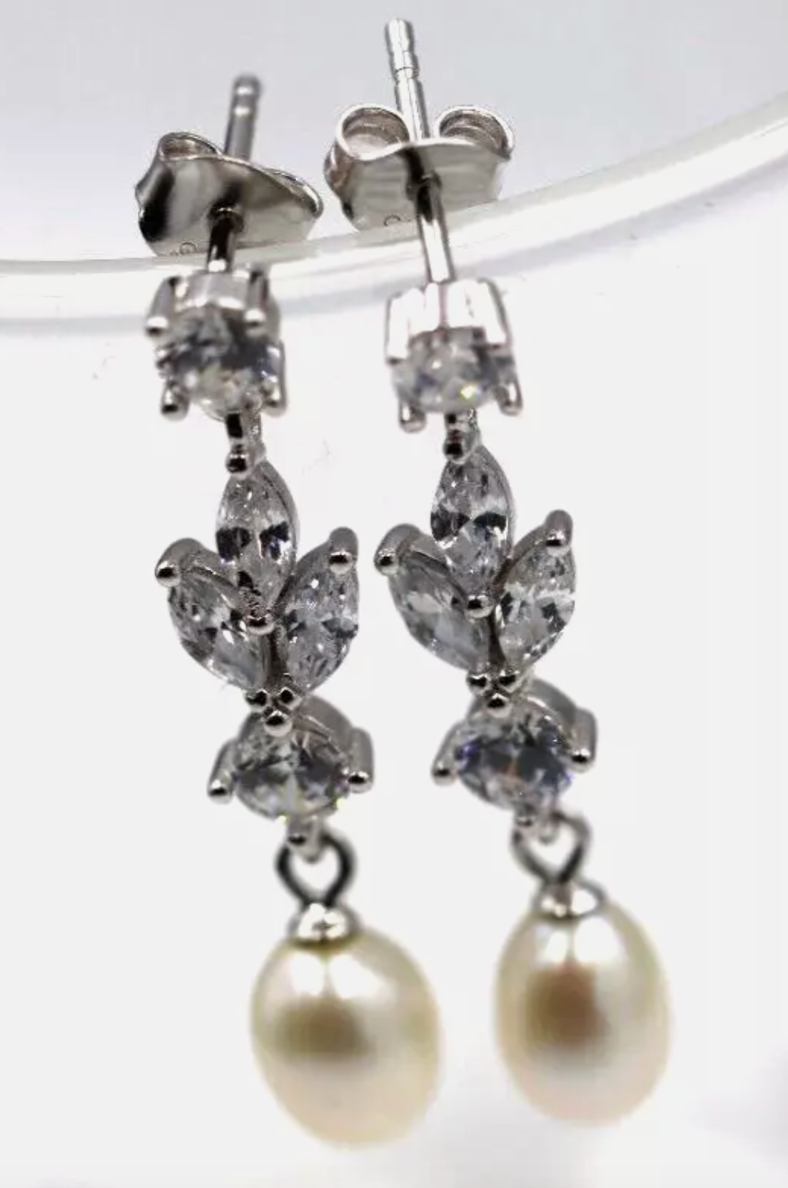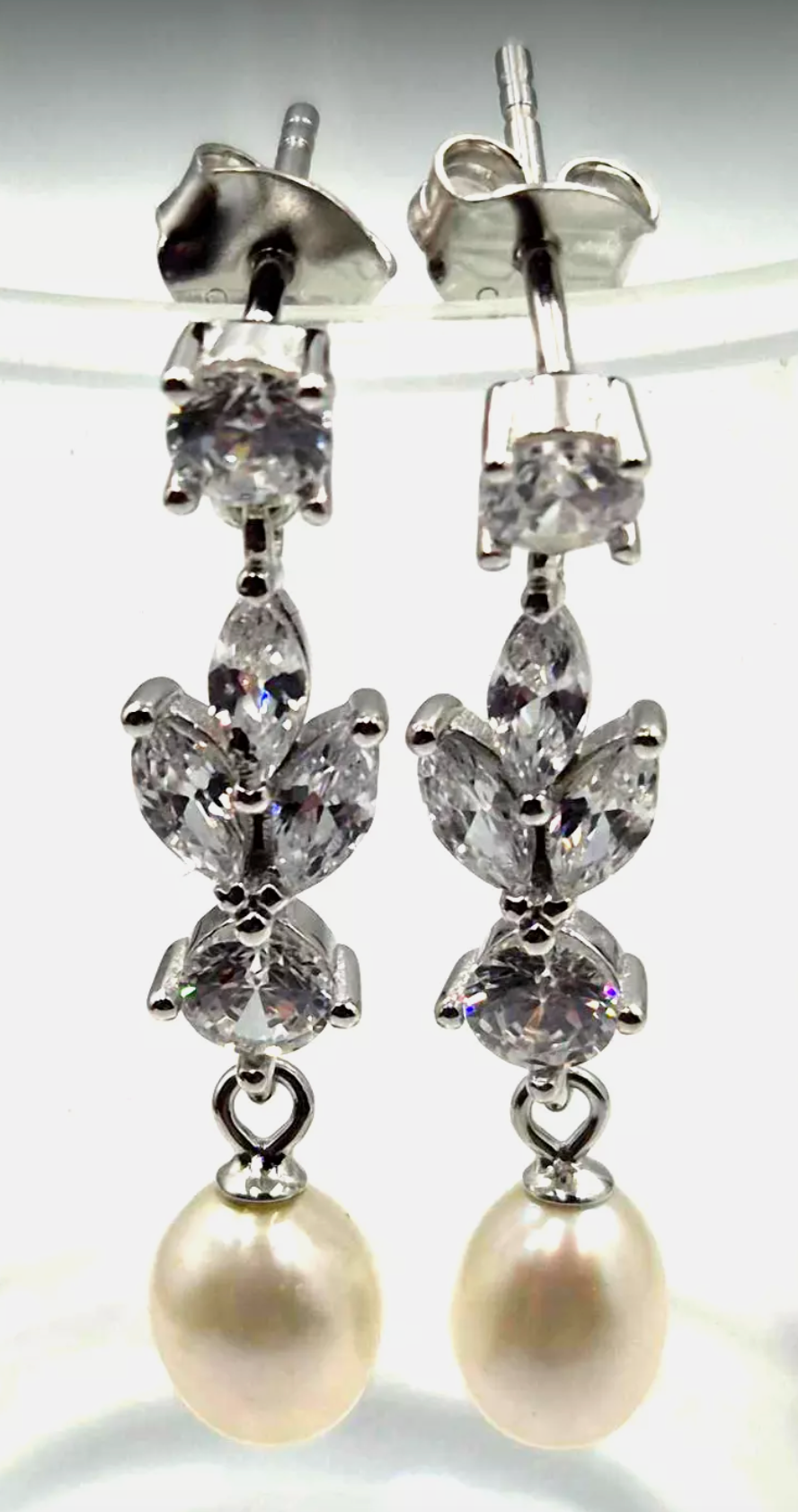 Oval shell pearl 6mm x 8mm (Shell pearl) 31mm drop stones are cubic zirconia |