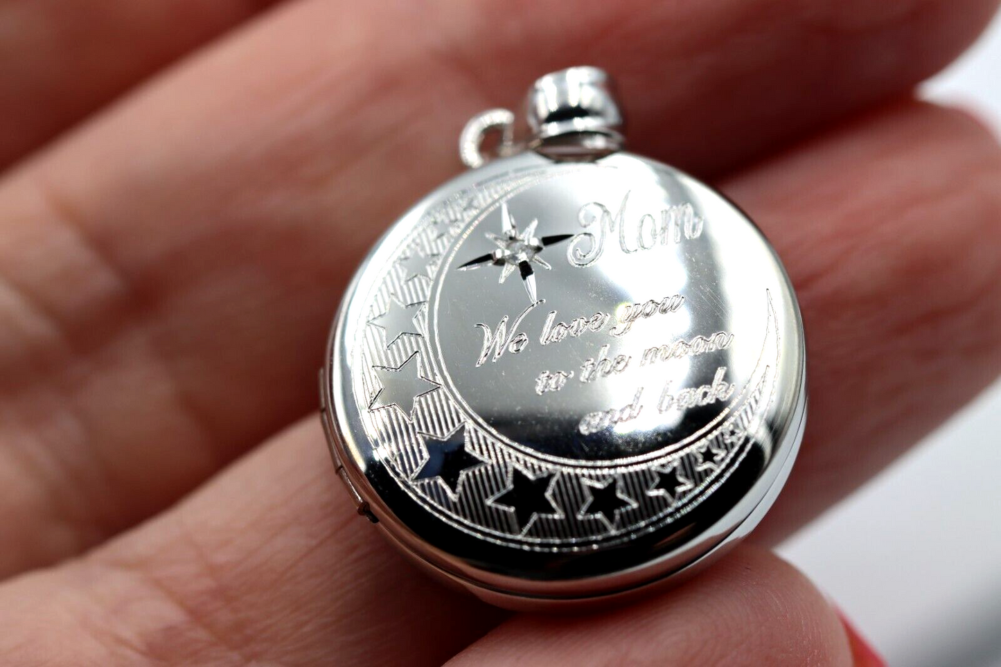 Sterling Silver Diamond Set Engraved Locket Mom for 2 pictures
