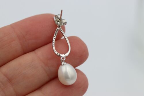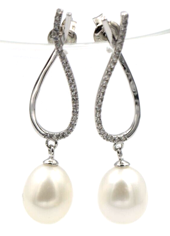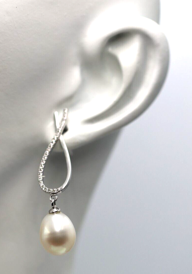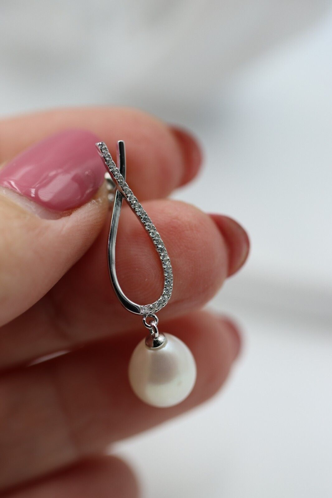 12mm ball - STERLING SILVER BALL 8mm x 10mm- freshwater white pearl 34mm drop Stones are cubic zirconia |