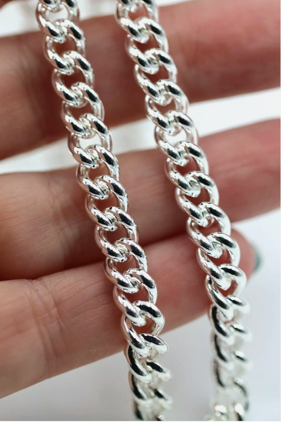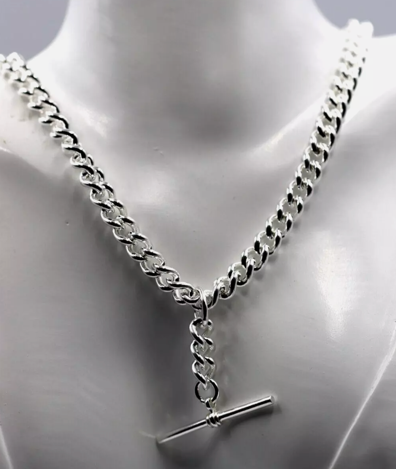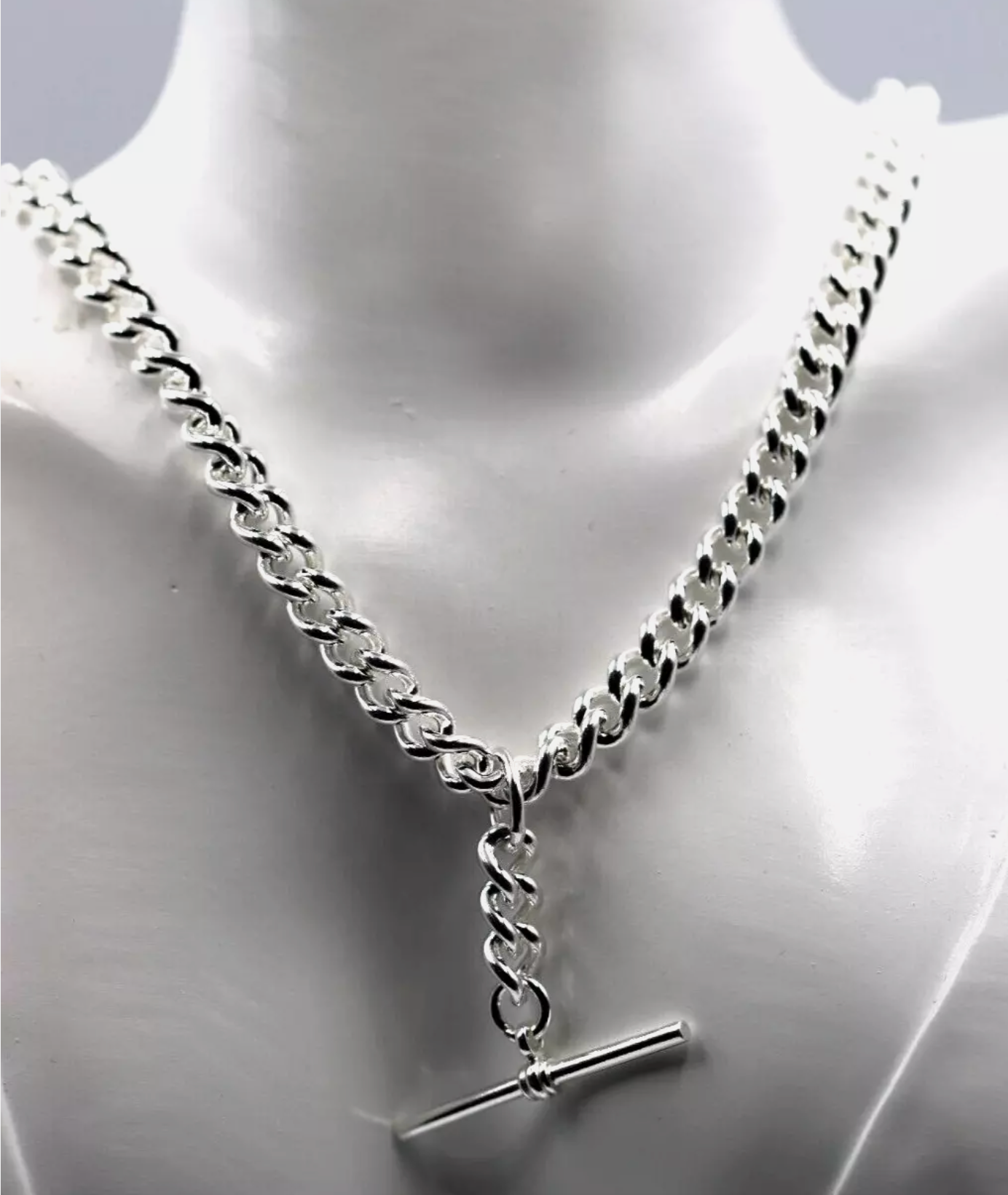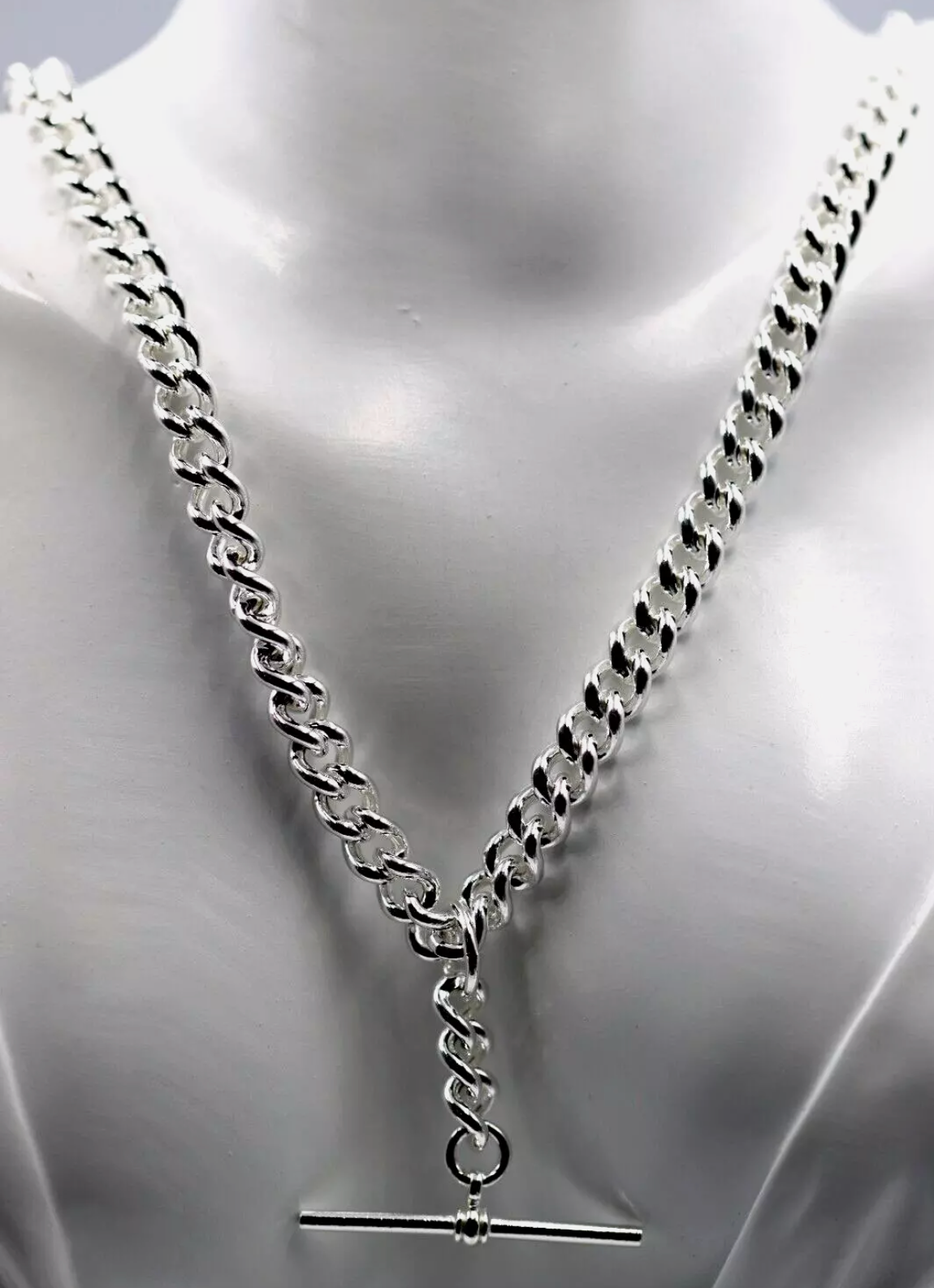 Sterling Silver 925 Heavy Kerb Curb Chain Necklace 50cm 71.2grams T-Bar + 2 x swivels Clasps