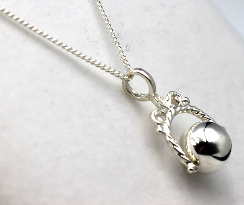 Sterling Silver Spinner Plain Ball Pendant + 55cm Curb Necklace